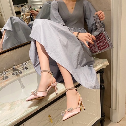 Niulatu High-heeled Sandals Sexy Fashion Rhinestone Thin Strap Toe European and American New Roman Women's Shoes DJSE