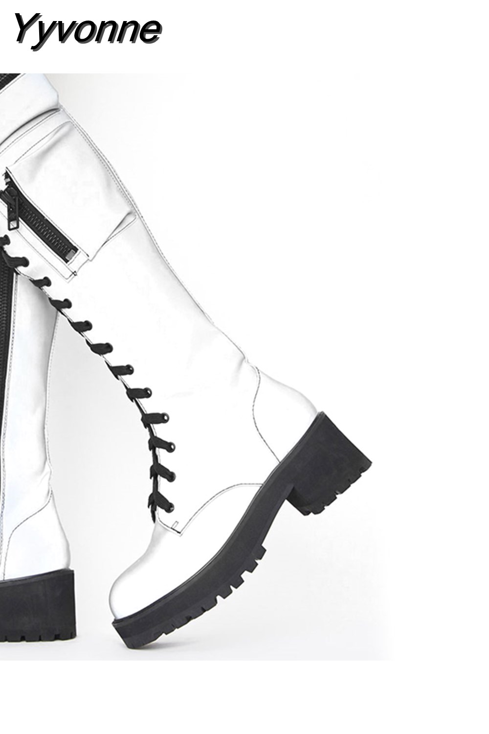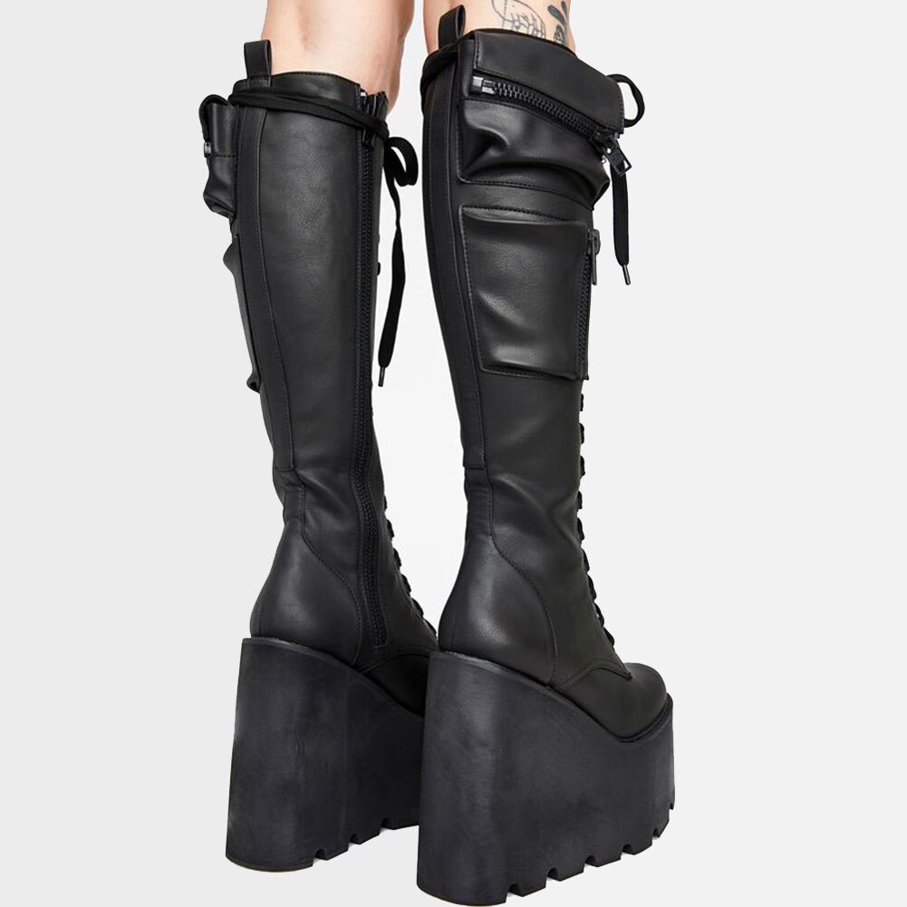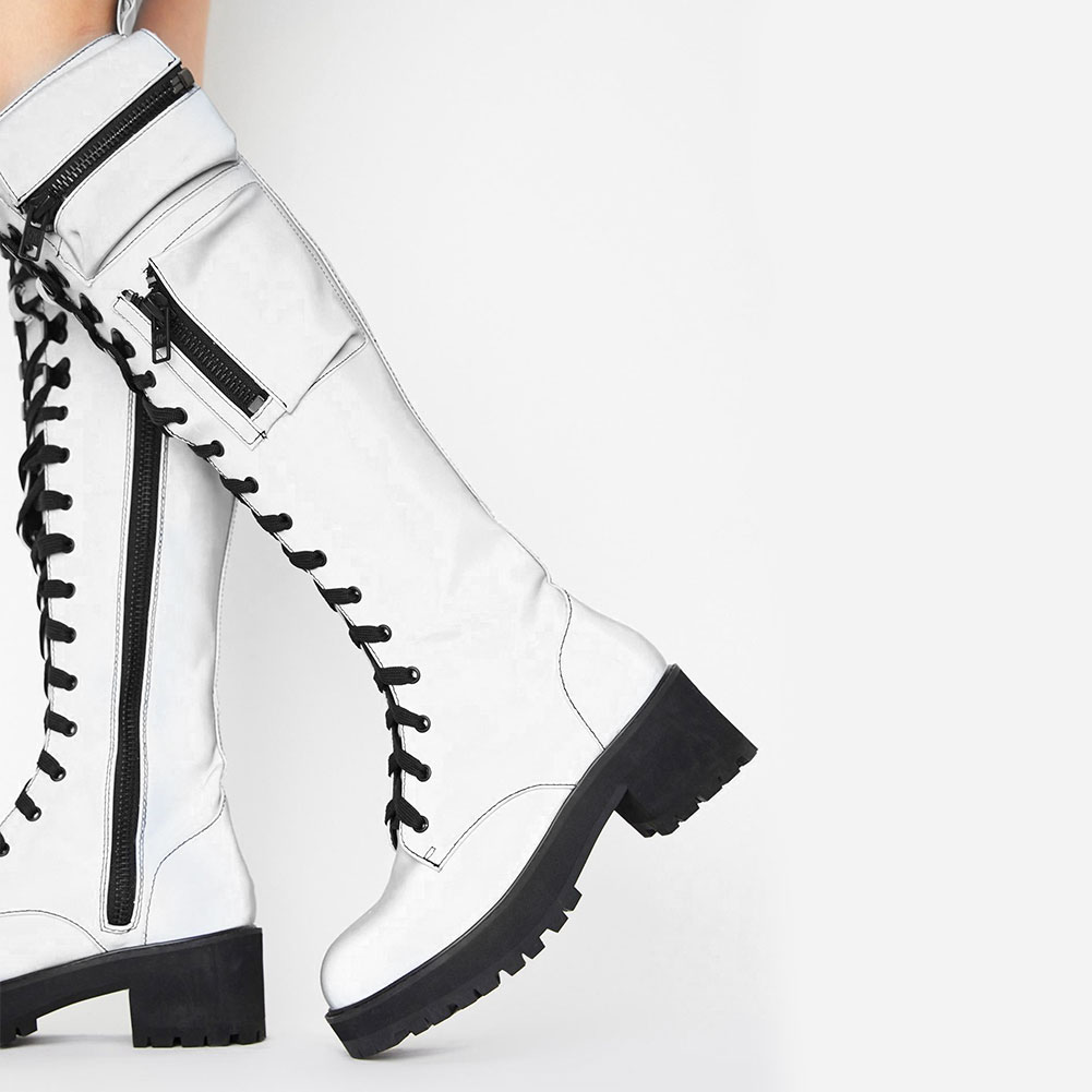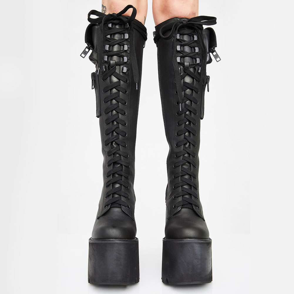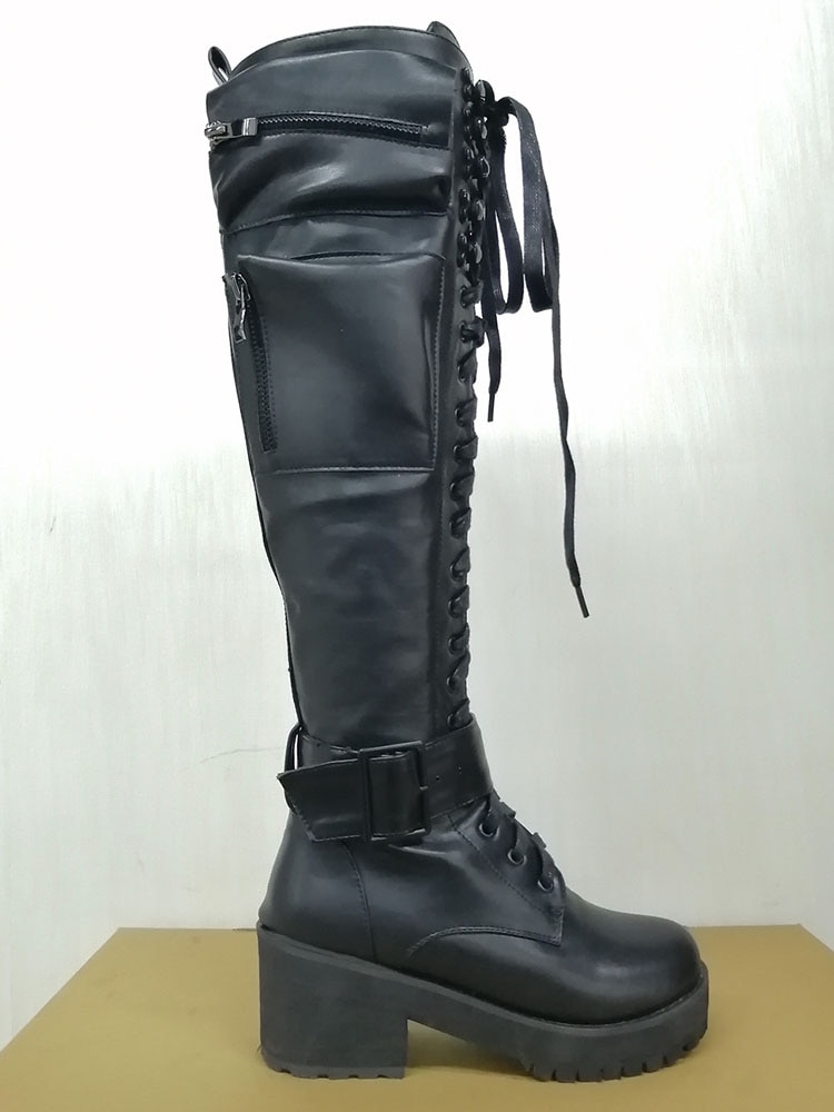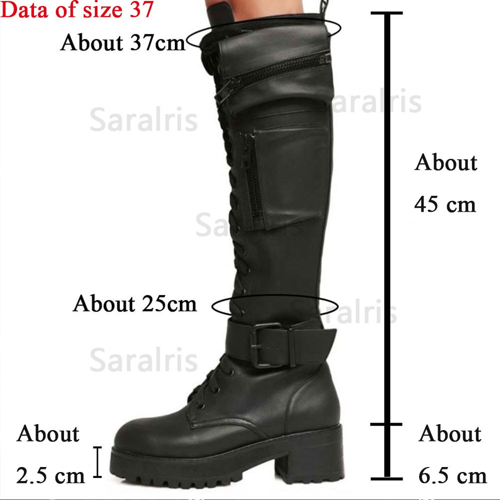Niulatu High Quality Female Motorcycle Boots Square Heel Lace-Up Narrow Band Winter Cool Street Women Knee High Boots Shoes DJSE