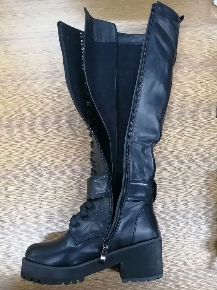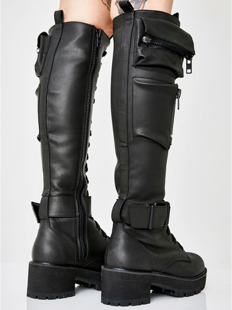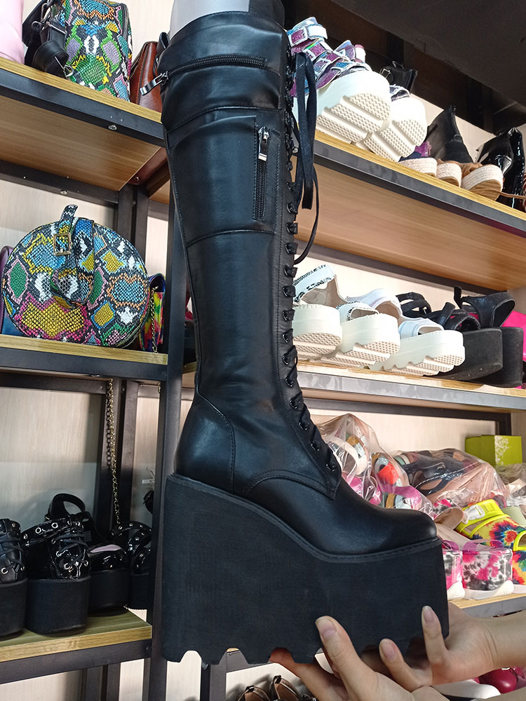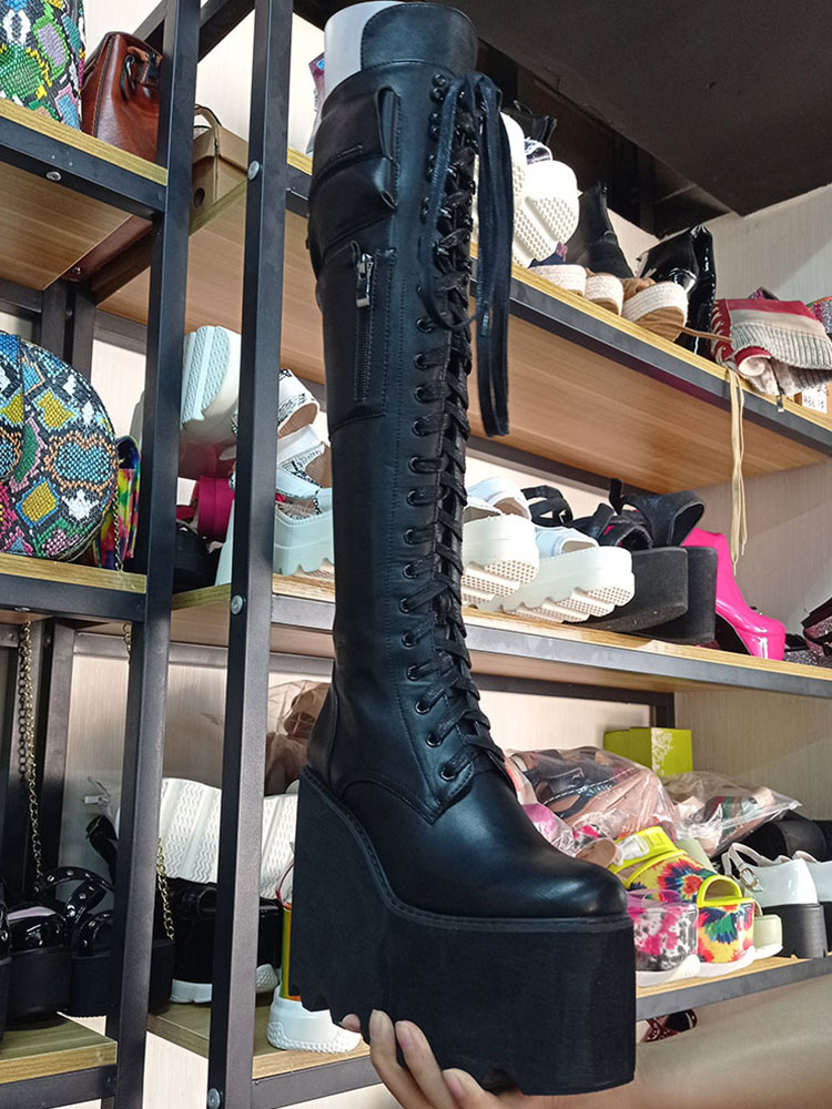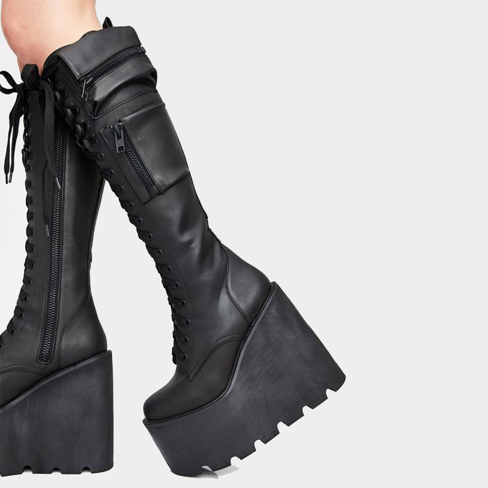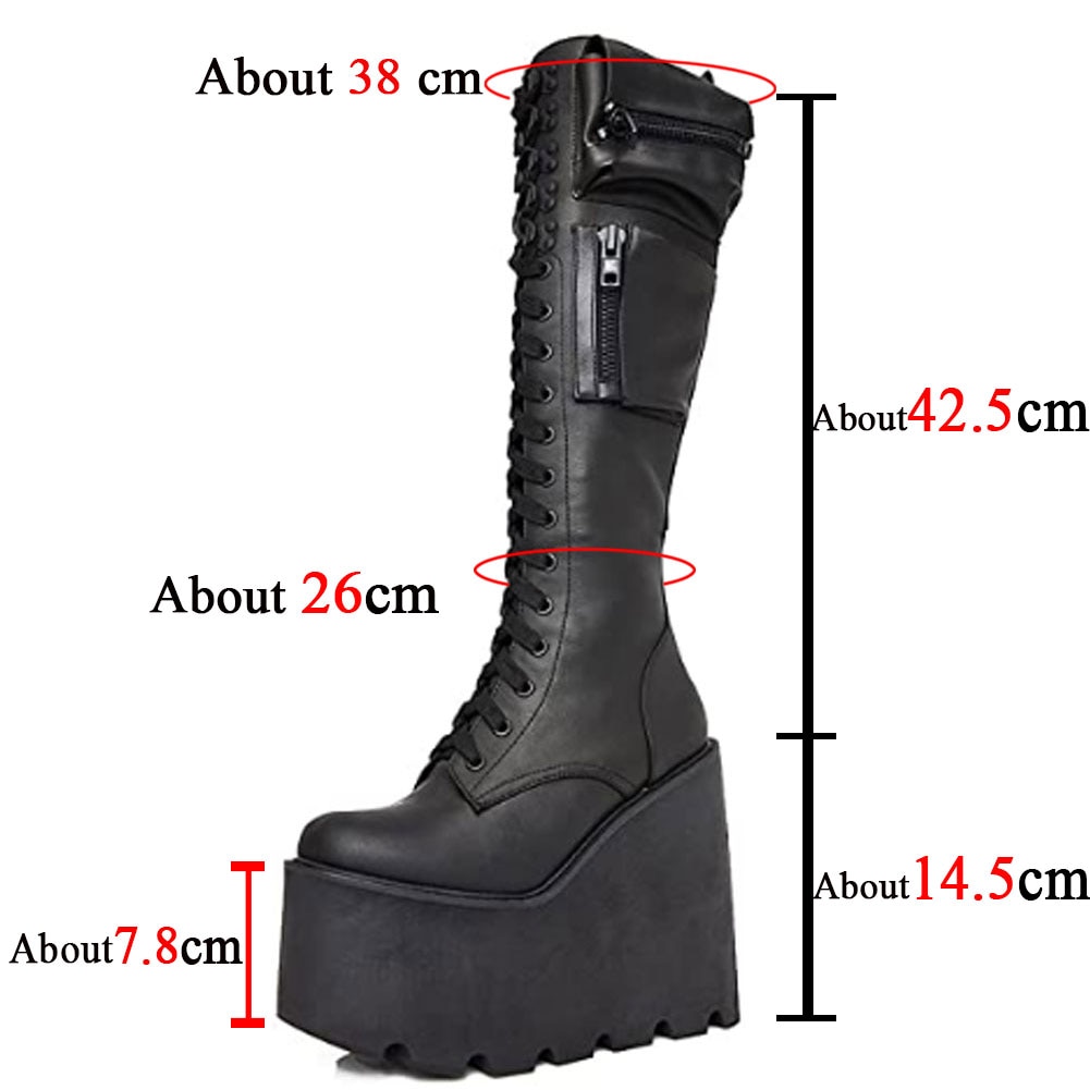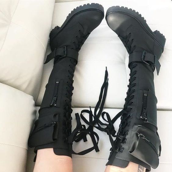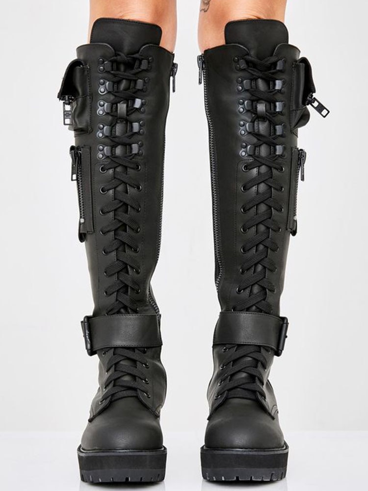 Niulatu High Quality Female Motorcycle Boots Square Heel Lace-Up Narrow Band Winter Cool Street Women Knee High Boots Shoes DJSE