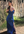 Chic Spaghetti Strap Sheath Long Prom Dresses Satin Navy Blue Evening Dresses with Slits HZ1121