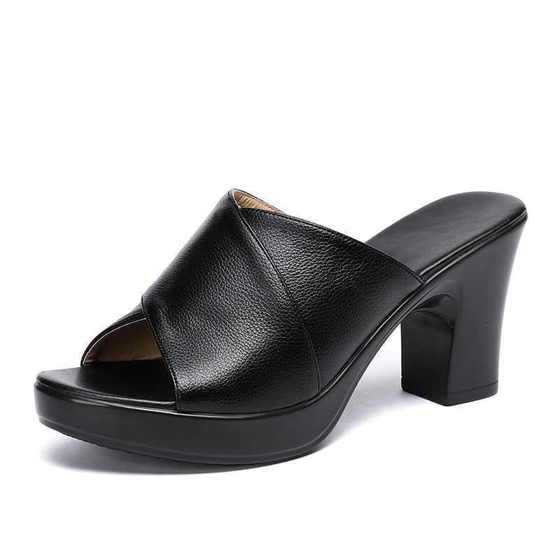 Niulatu Fashion Women Sandals Comfortable Genuine Leather Thick Heels Women's Casual Shoes Summer Platform Sandal Plus Size 42 DJSE