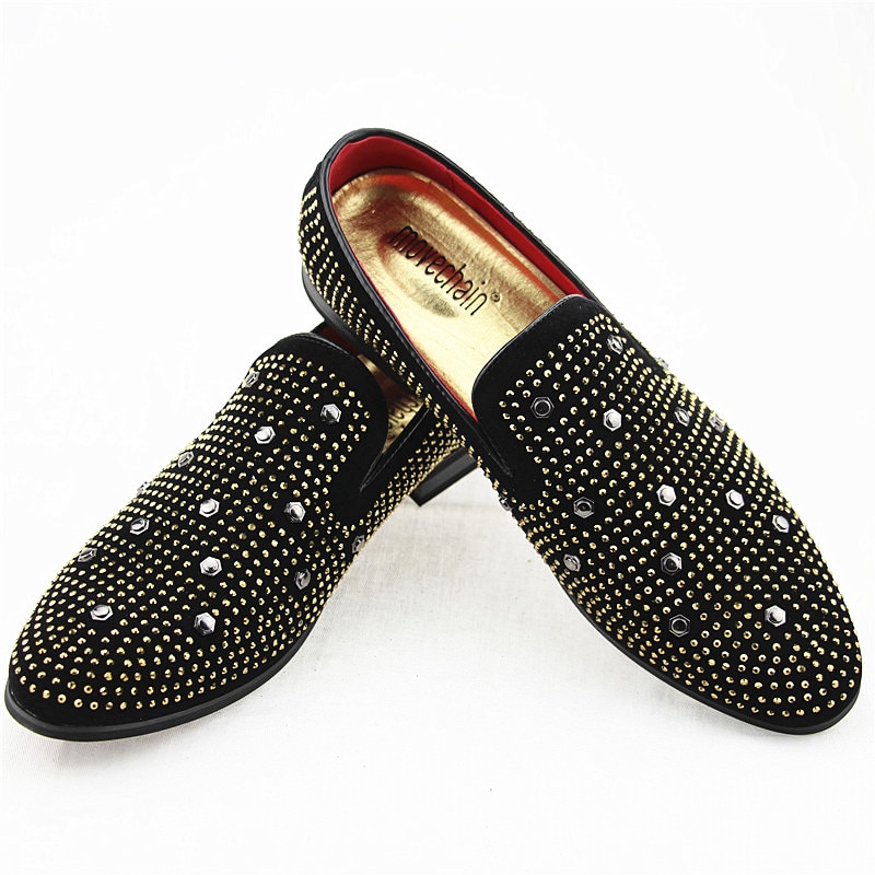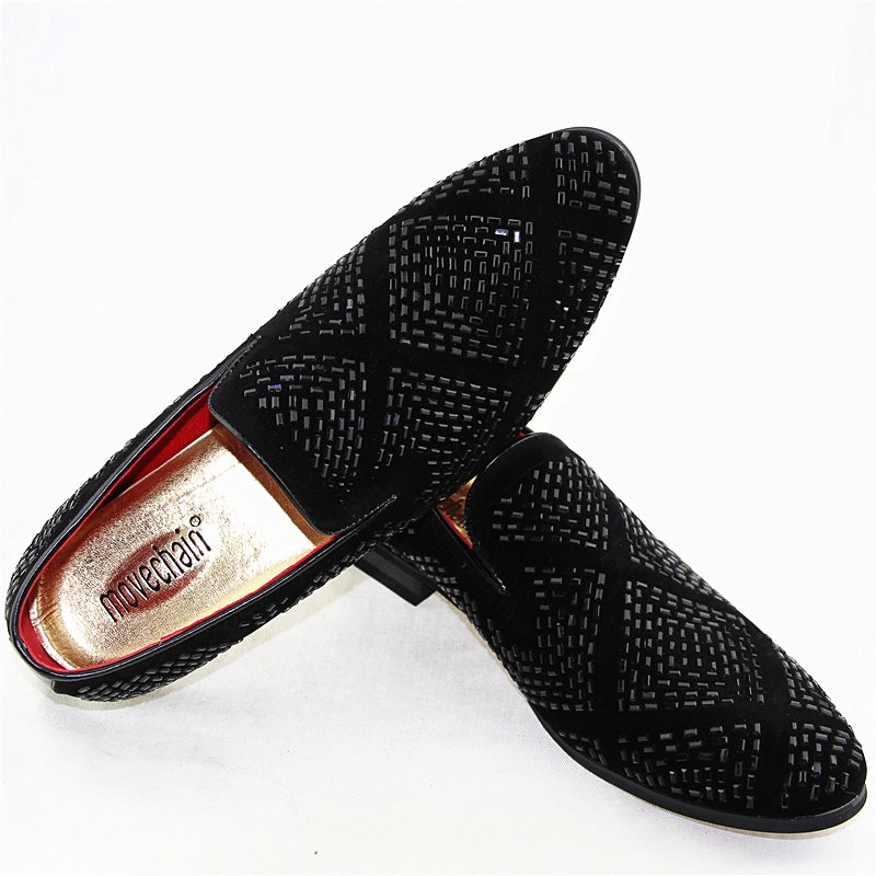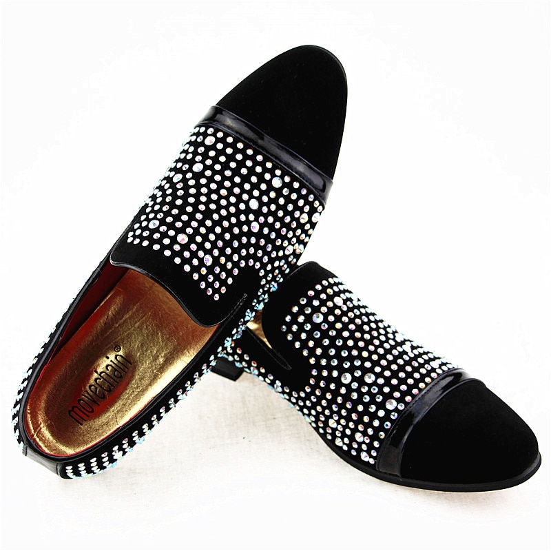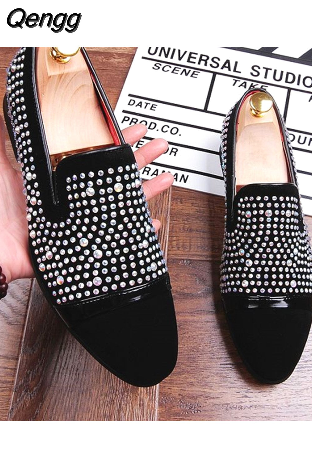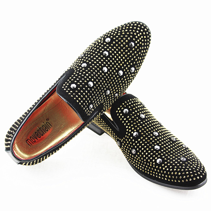 Niulatu Men's Fashion Suede Leather Loafers Mens Rivets Embroidery Rhinestone Party Flats Man Moccasins Oxfords Casual Shoes DJSE