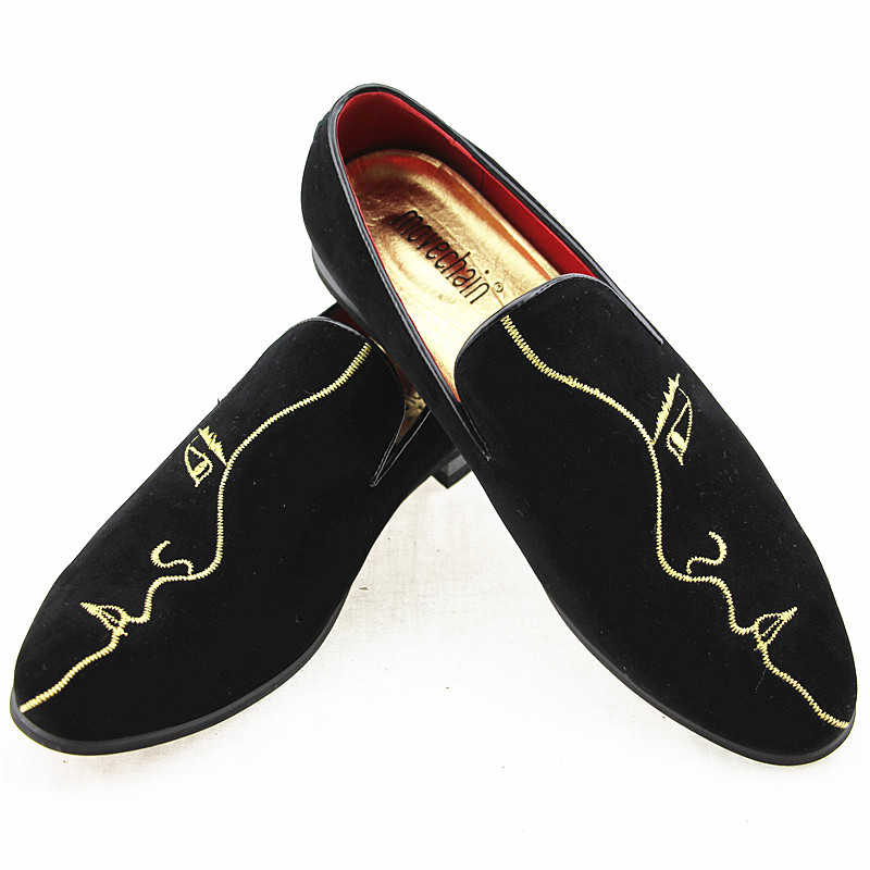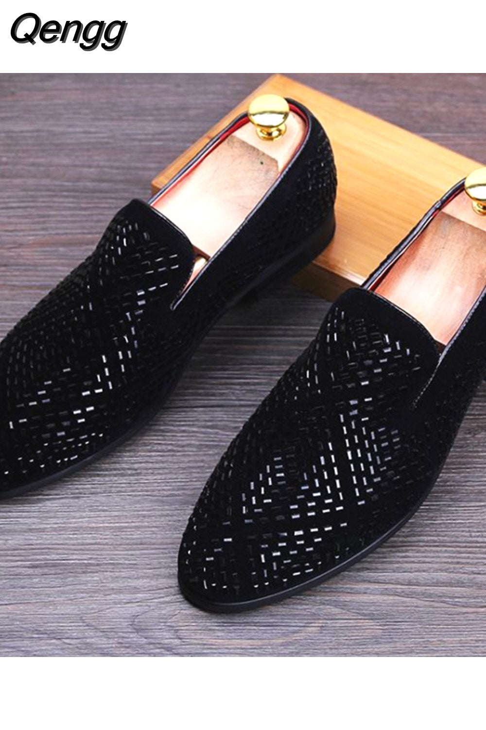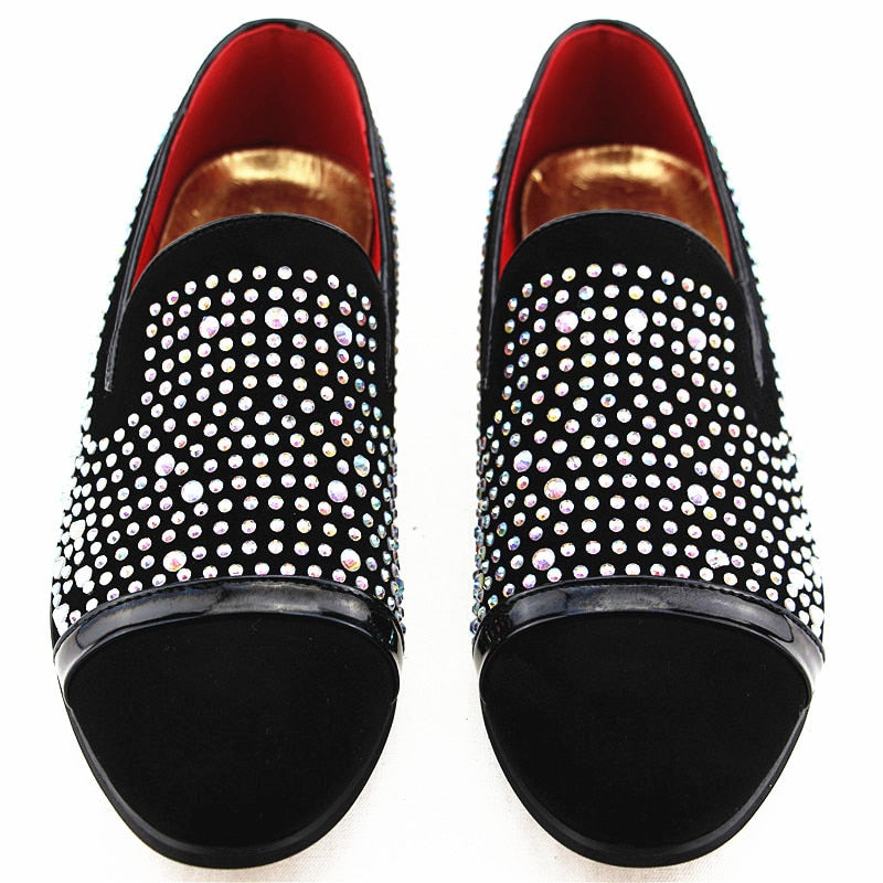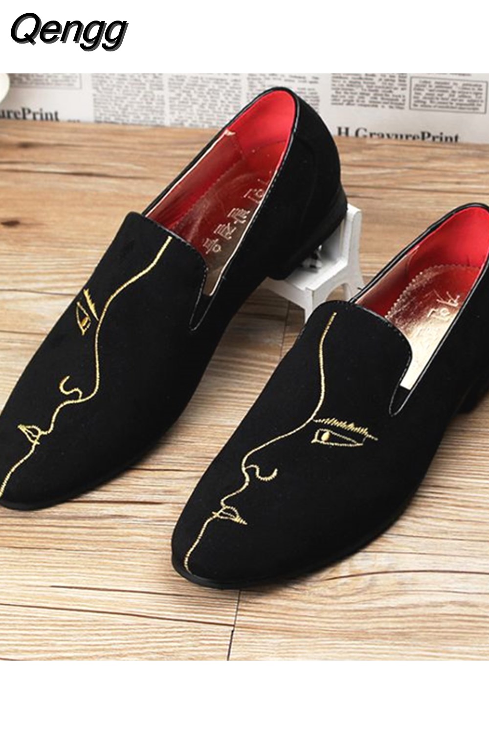 Niulatu Men's Fashion Suede Leather Loafers Mens Rivets Embroidery Rhinestone Party Flats Man Moccasins Oxfords Casual Shoes DJSE