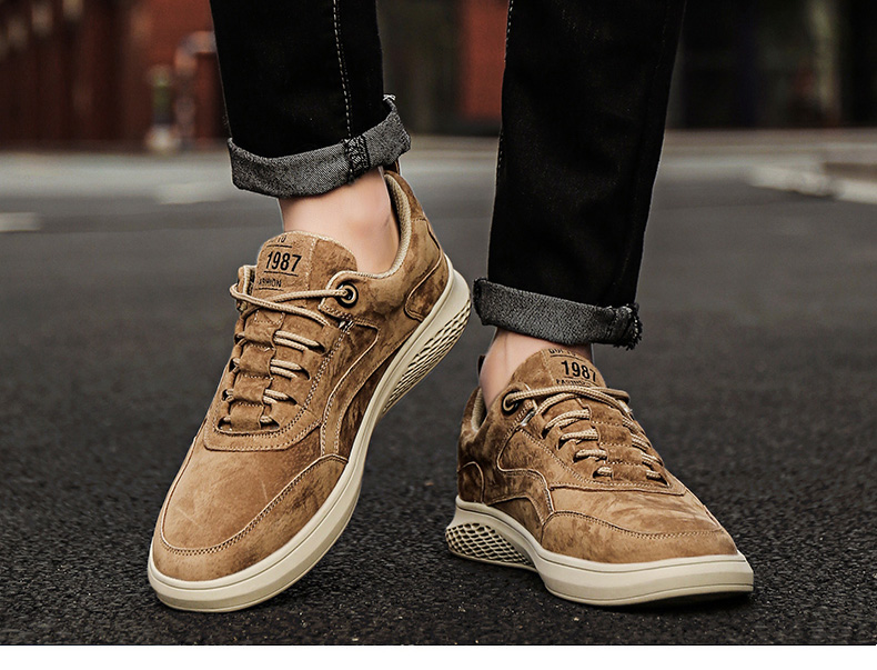 Niulatu Men's genuine Leather Casual Shoess lace up Trend Comfortable Men Shoes outdoor Sneakers British Fashion Men High Top Moccasins DJSE
