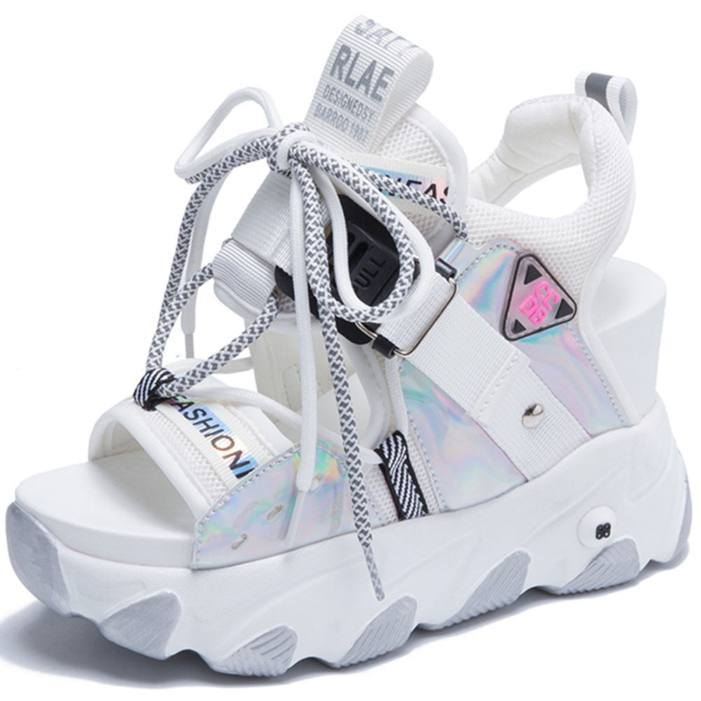Niulatu New Lady Platform Chunky Sandals Lace Up Buckle Punk Cool Women's Sandals Open Toe Casual Summer Sports Shoes DJSE