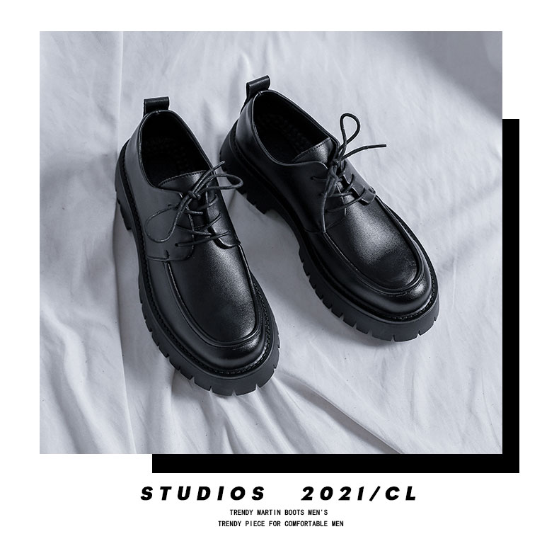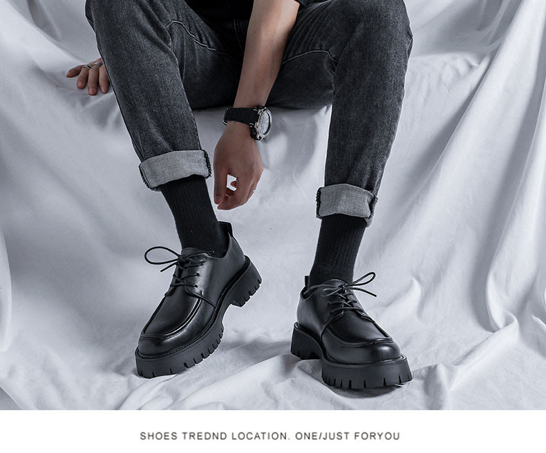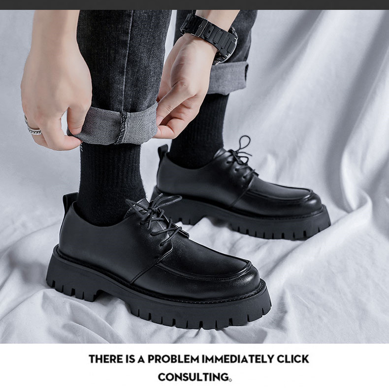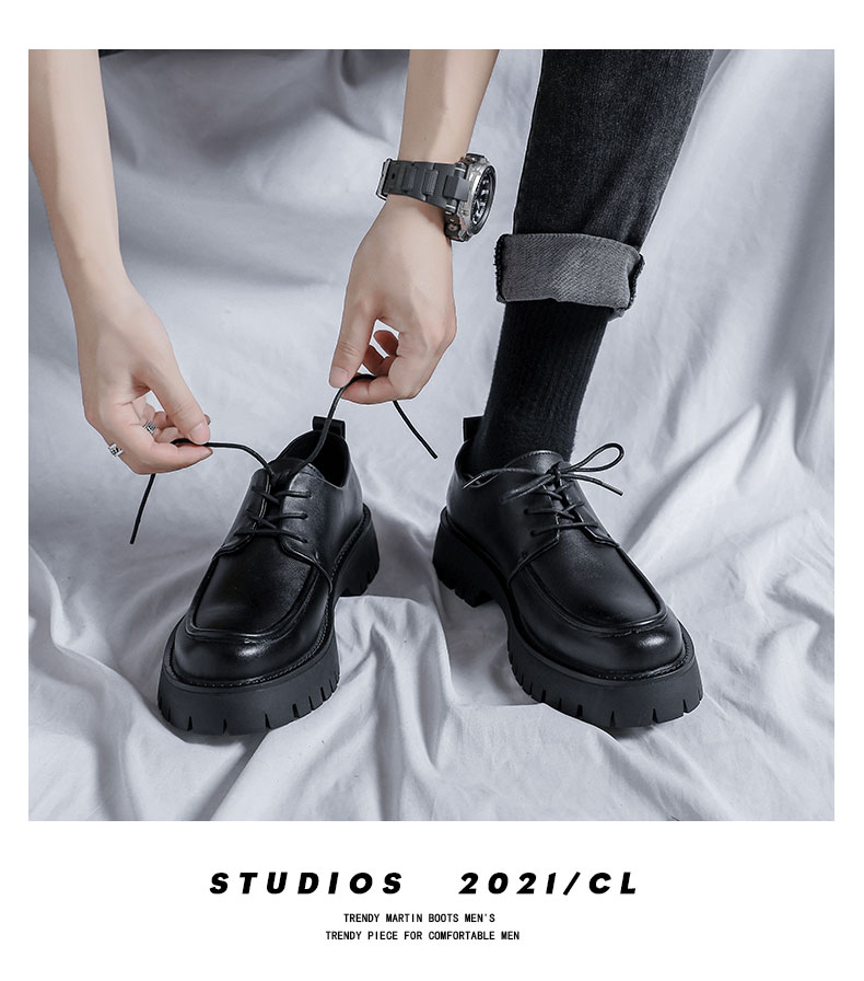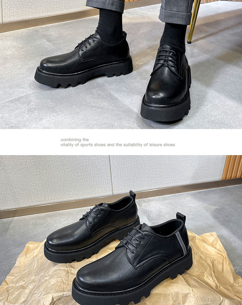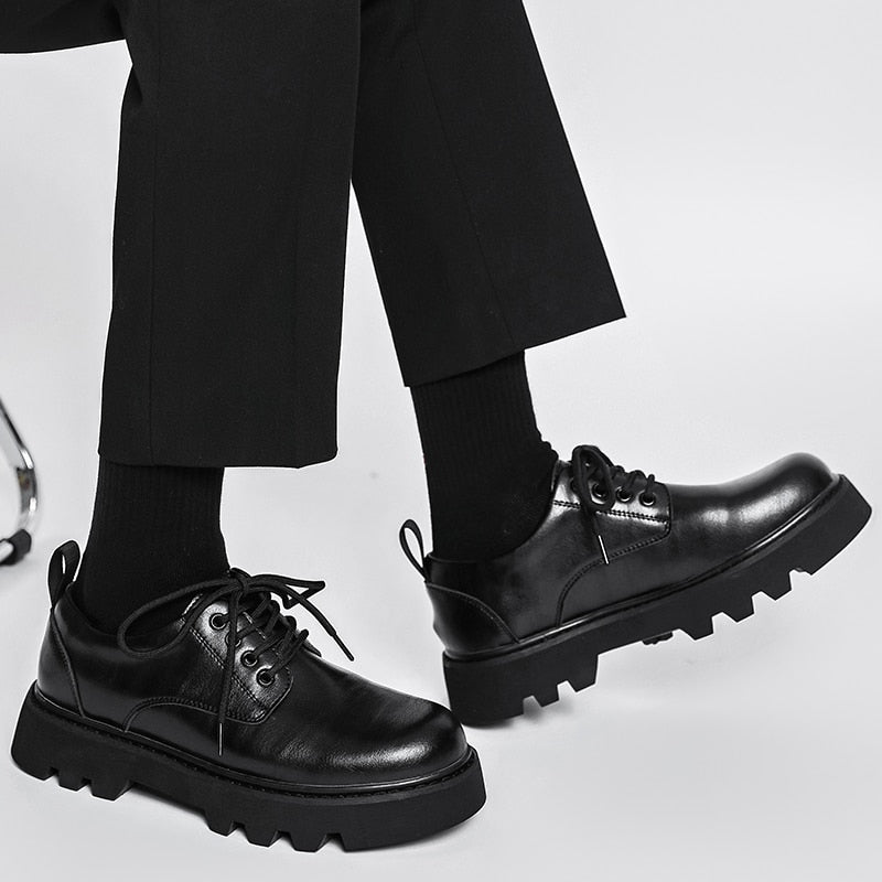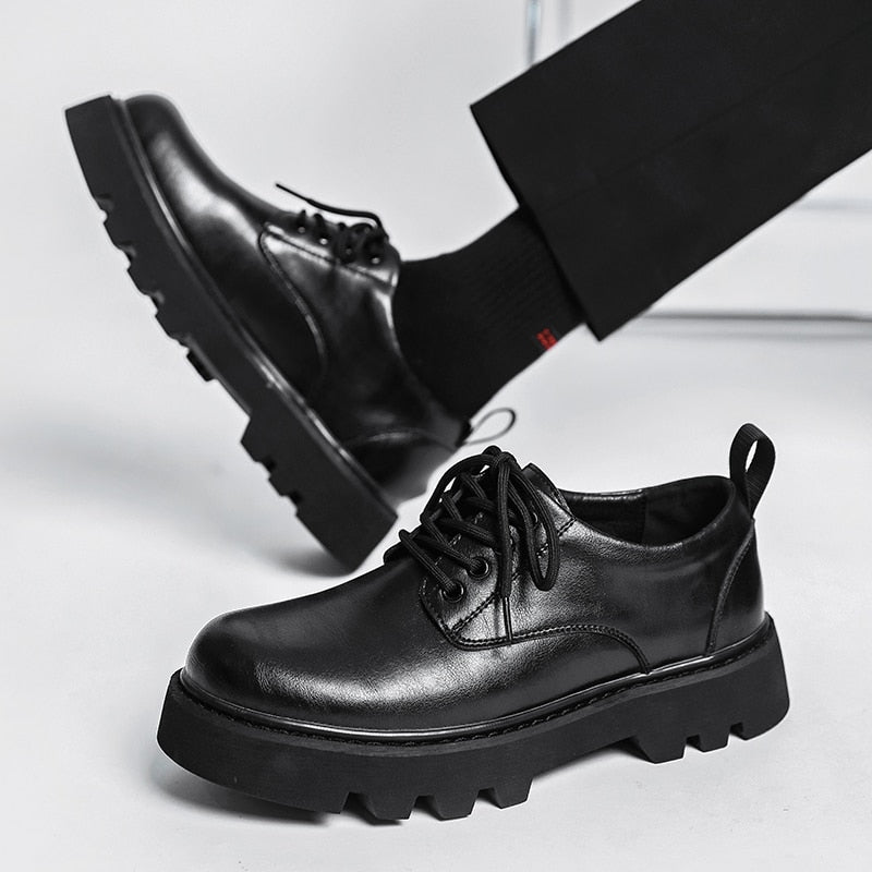 New Platform Men Casual Leather Shoes Designer Fashion Thick Sole Martin Shoes Classic High Quality Black Business Shoes for Men
