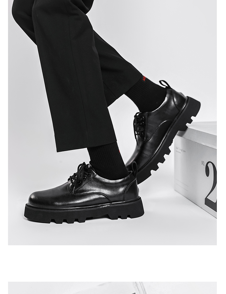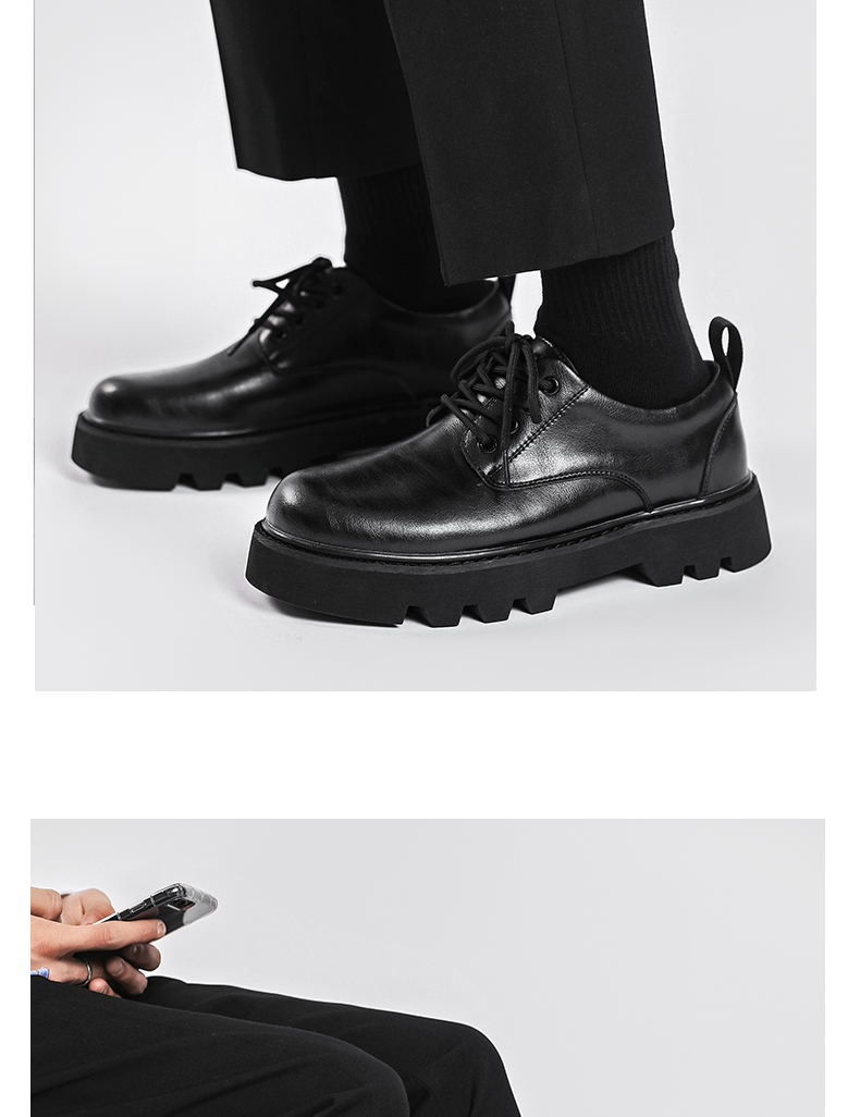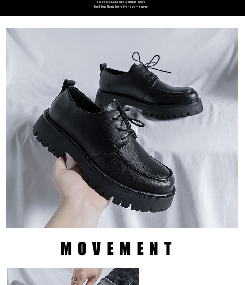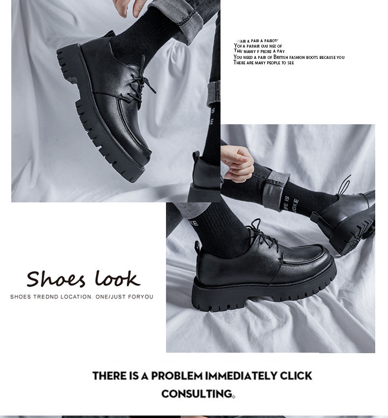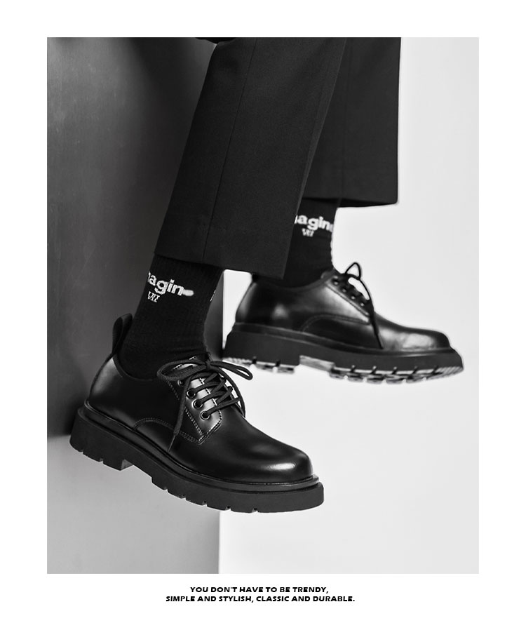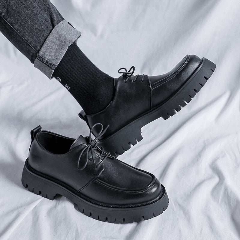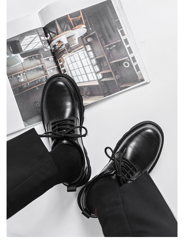 New Platform Men Casual Leather Shoes Designer Fashion Thick Sole Martin Shoes Classic High Quality Black Business Shoes for Men