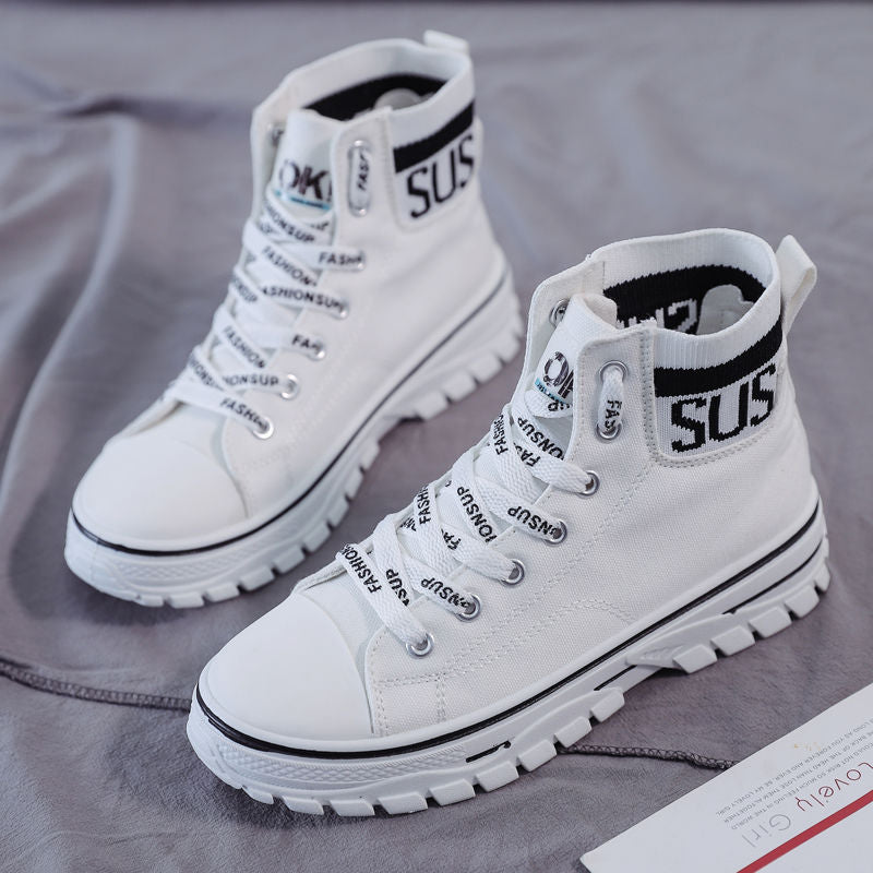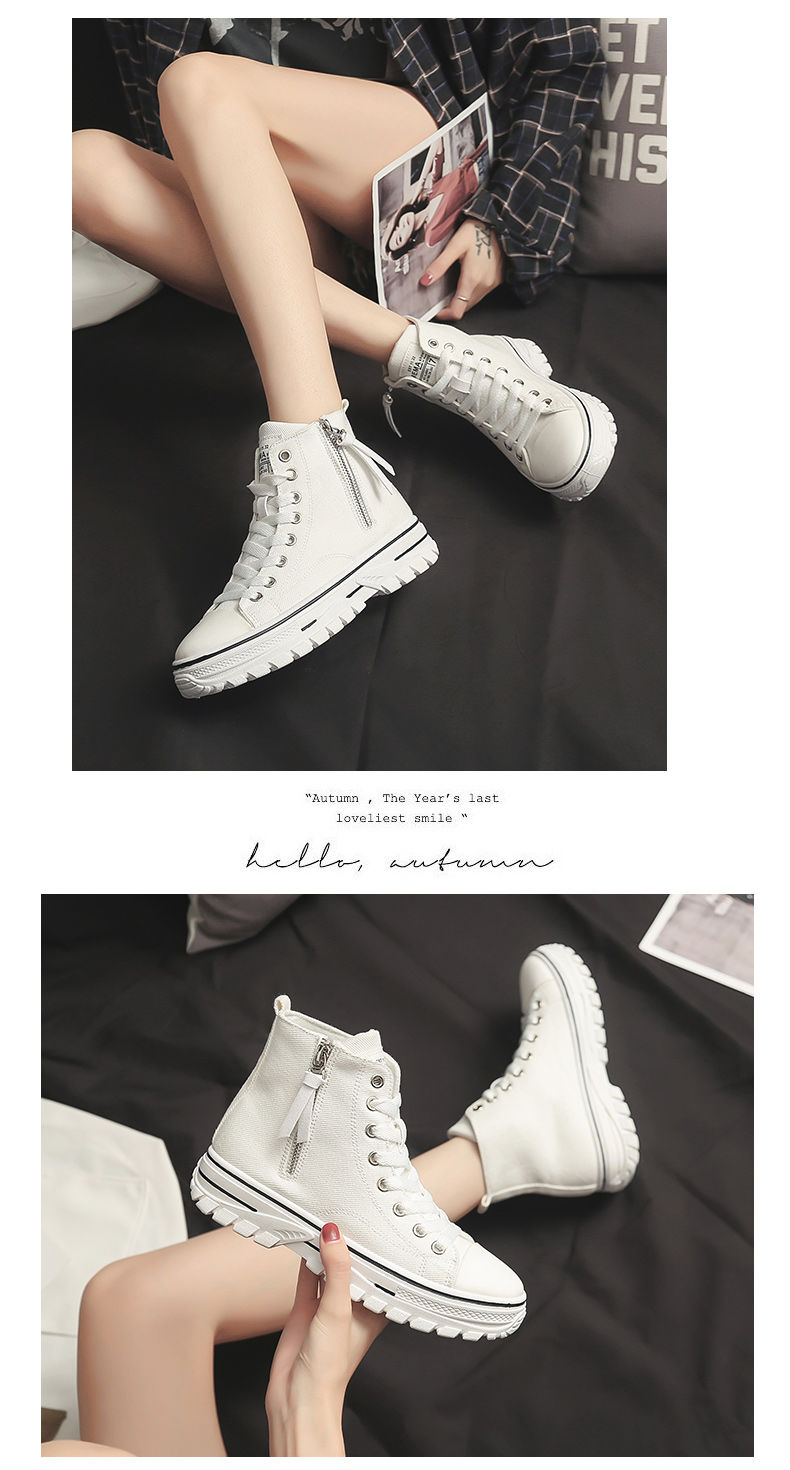 Niulatu Spring New Style Women Casual Shoes Platform Sneakers PU Leather Shoes Woman High Top White Shoes Tenis Feminino DJSE