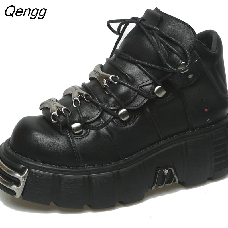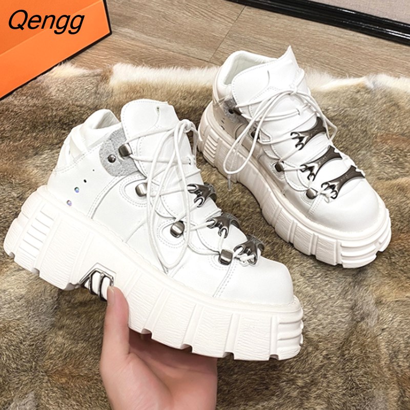 Niulatu Style Women Sneakers Lace-up 6CM Platform Shoes Woman Creepers Female Casual Flats Metal Decor New Platform Shoes Cozy DJSE