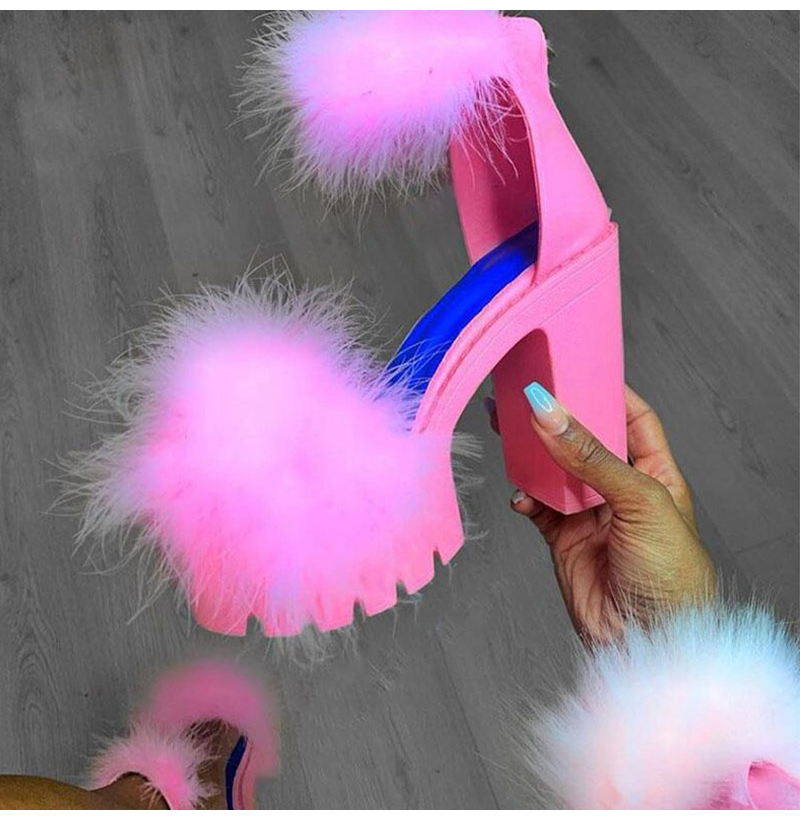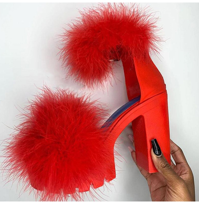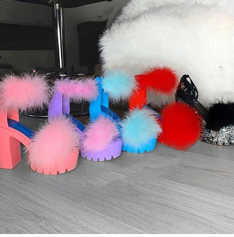 Niulatu to college Women Sandals Fluffy High Heels Summer Fur Shoes 2025 Casual Ankle Buckle Fashion Shoes Non-Slip Outside Sandals Big Size 43 DJSE