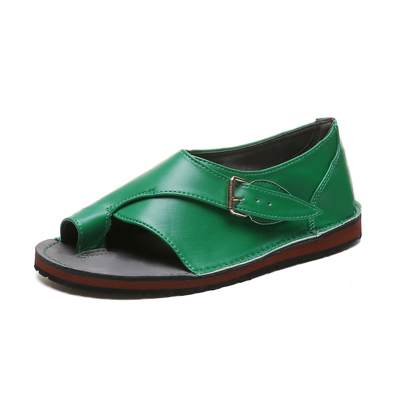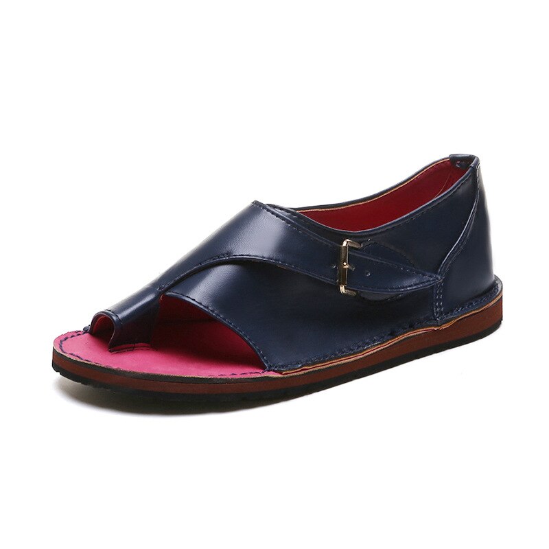 Niulatu Women Casual Flat Sandals Ladies Pu Leather Open Toe Shoes Female Roman Beach Shoes Buckle Casual Zapatos Mujer Primavera Verano DJSE