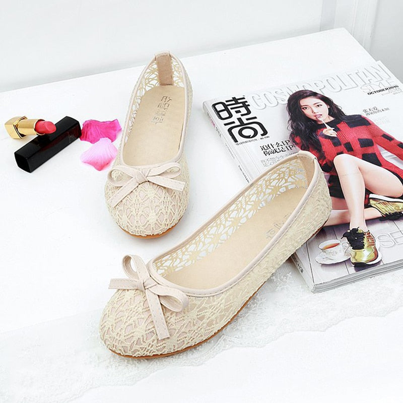 Niulatu Women Flats Bow Ballet Flats Shoes Women Fashion Slip On Cut Outs Flat Women Shoes Sweet Hollow Casual Shoes Breathble Flats DJSE
