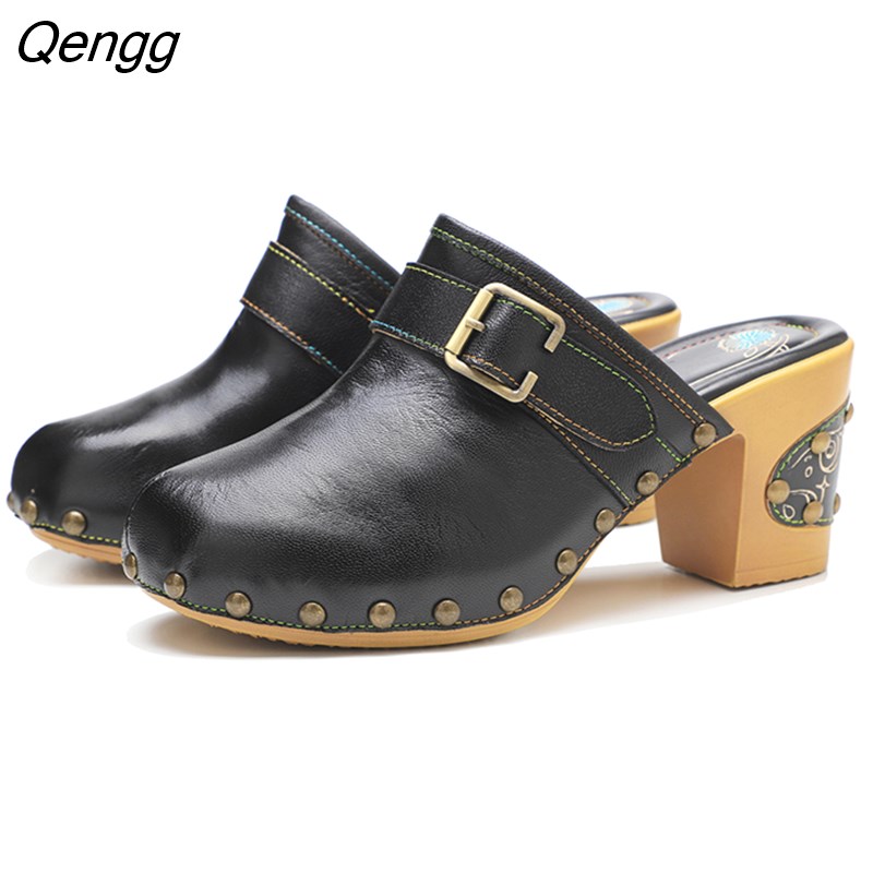 Niulatu Women Sandals 2025 Fashion Basic Ethnic Retro Genuine Leather Square heel 7.5CM Round Toe Casual Women Shoes DJSE