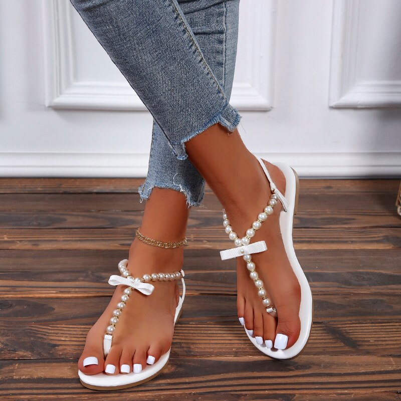 Niulatu Women sandals 2025 new summer shoes flat pearl sandals comfortable string bead beach slippers casual sandals pink white black DJSE