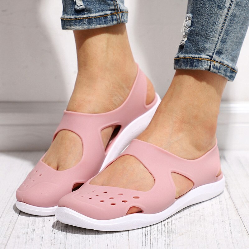 Niulatu Women Sandals Soft Flat Jelly Shoes Slip On Female Casual Girl Sandals Hollow Out Mesh Flats Beach Shoes New 531 DJSE