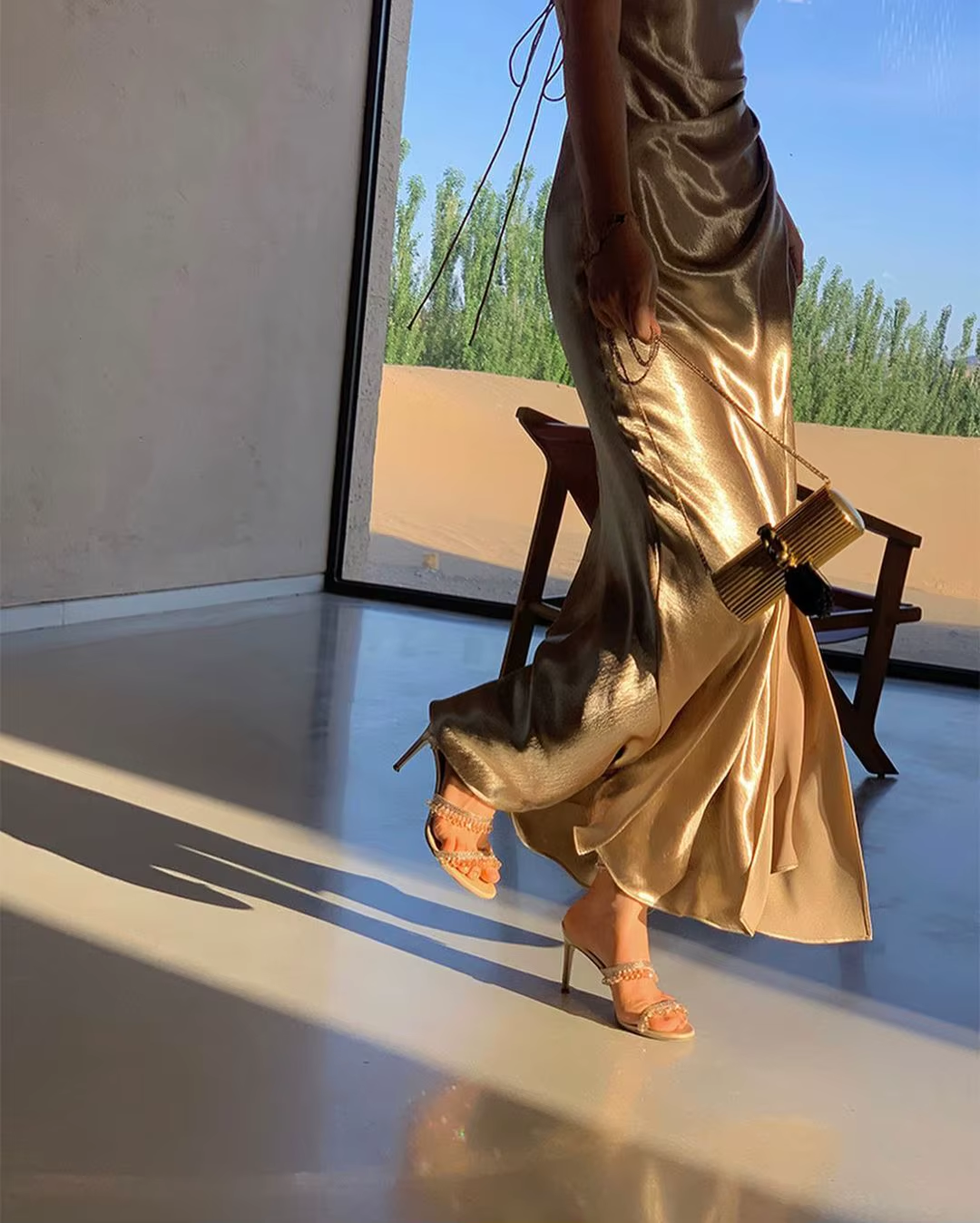 Niulatu Mermaid Straps Neckline Champagne Satin Long Prom Dress Evening Dress Formal Dress SD2175