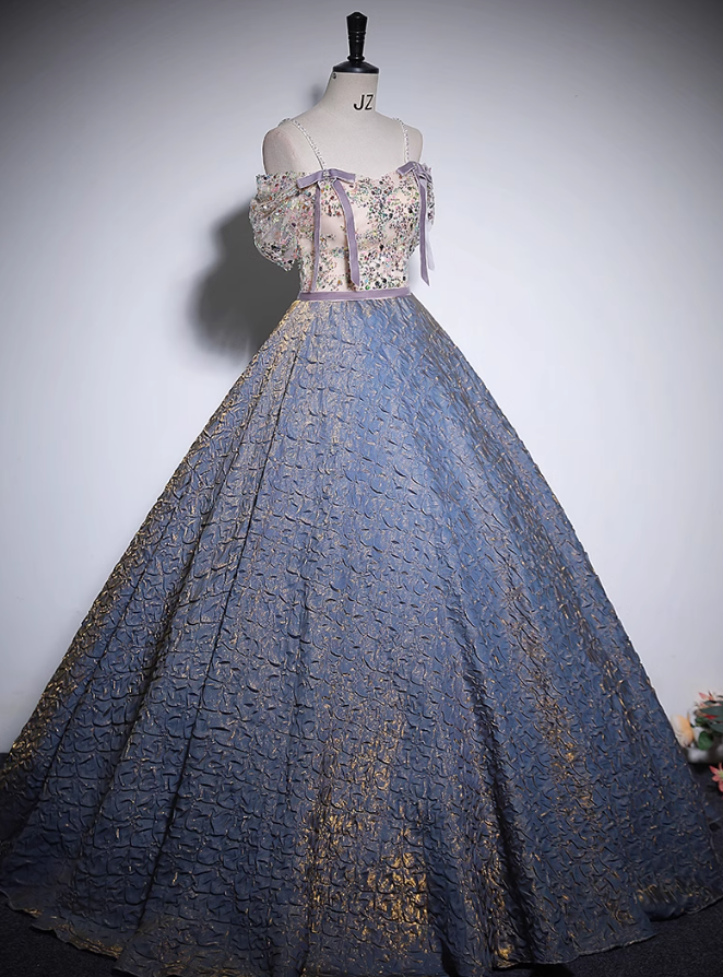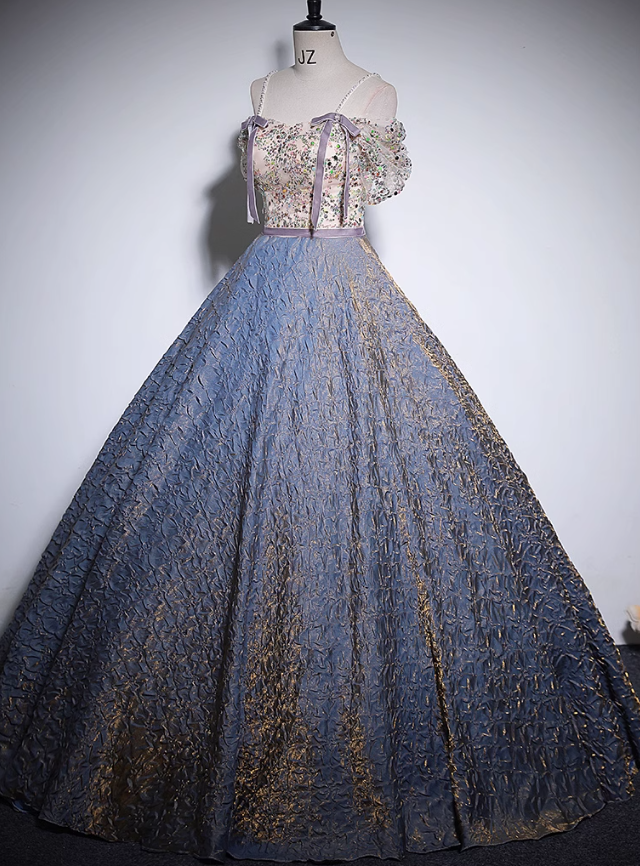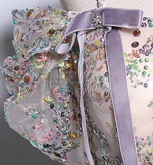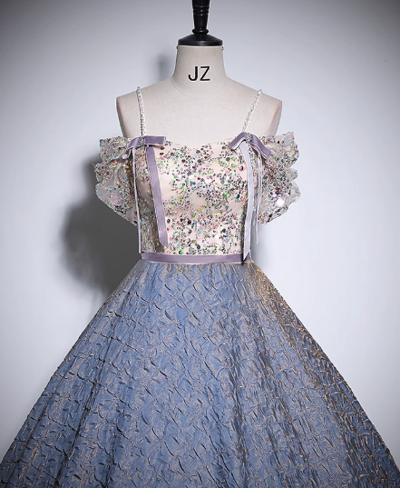 Niulatu A-line off-shoulder tulle sequined long prom dress, purple evening dress HZ1108