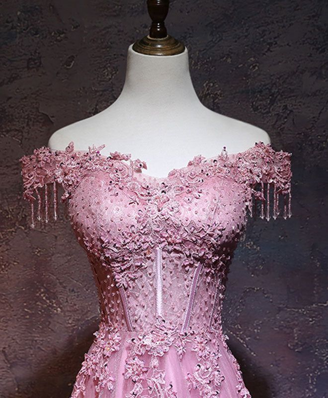 Niulatu A Line Off The Shoulder Pink Tulle Evening Dress Prom Dress HZ1110