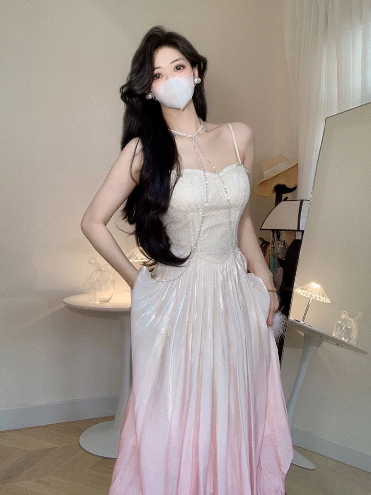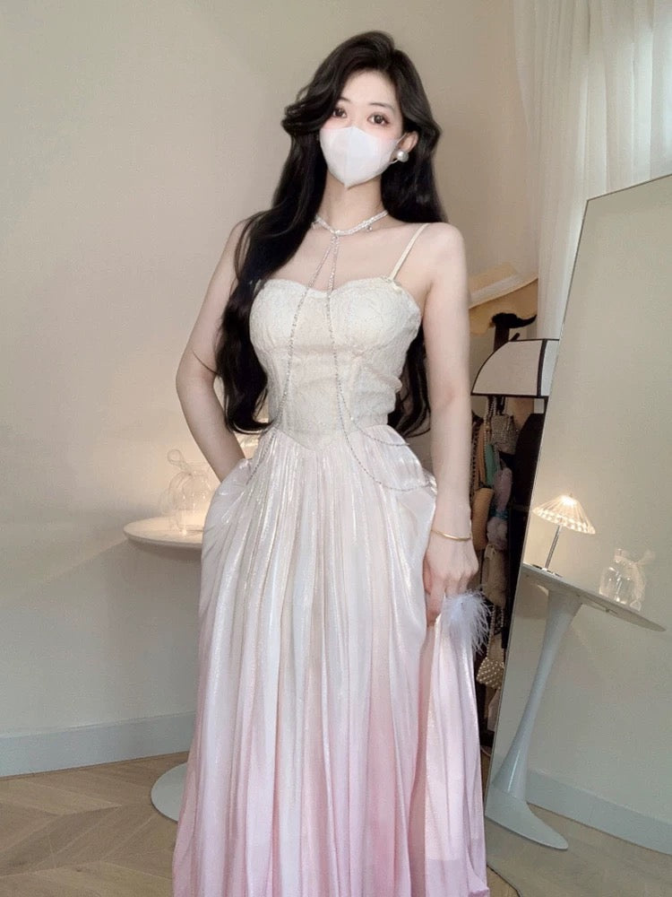 Niulatu A Line Spaghetti Straps Ombre Pink Long Evening Dress Prom Dresses HZ1110