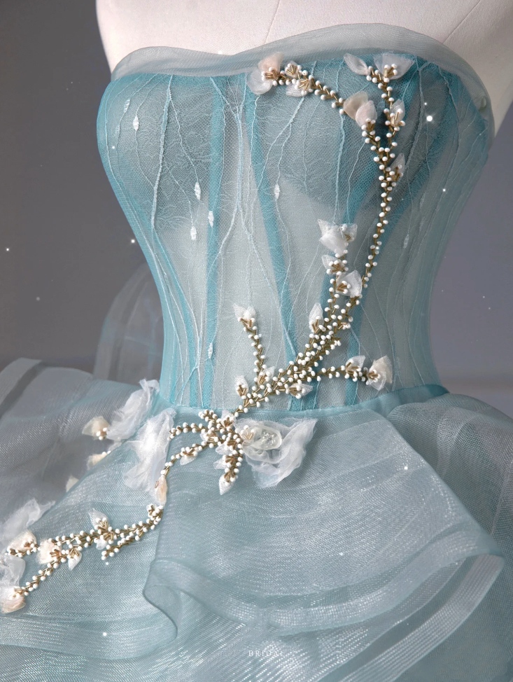 Niulatu Ball Gown Sweetheart Tulle Green Long Evening Dress Prom Dresses With Ruffles HZ1110