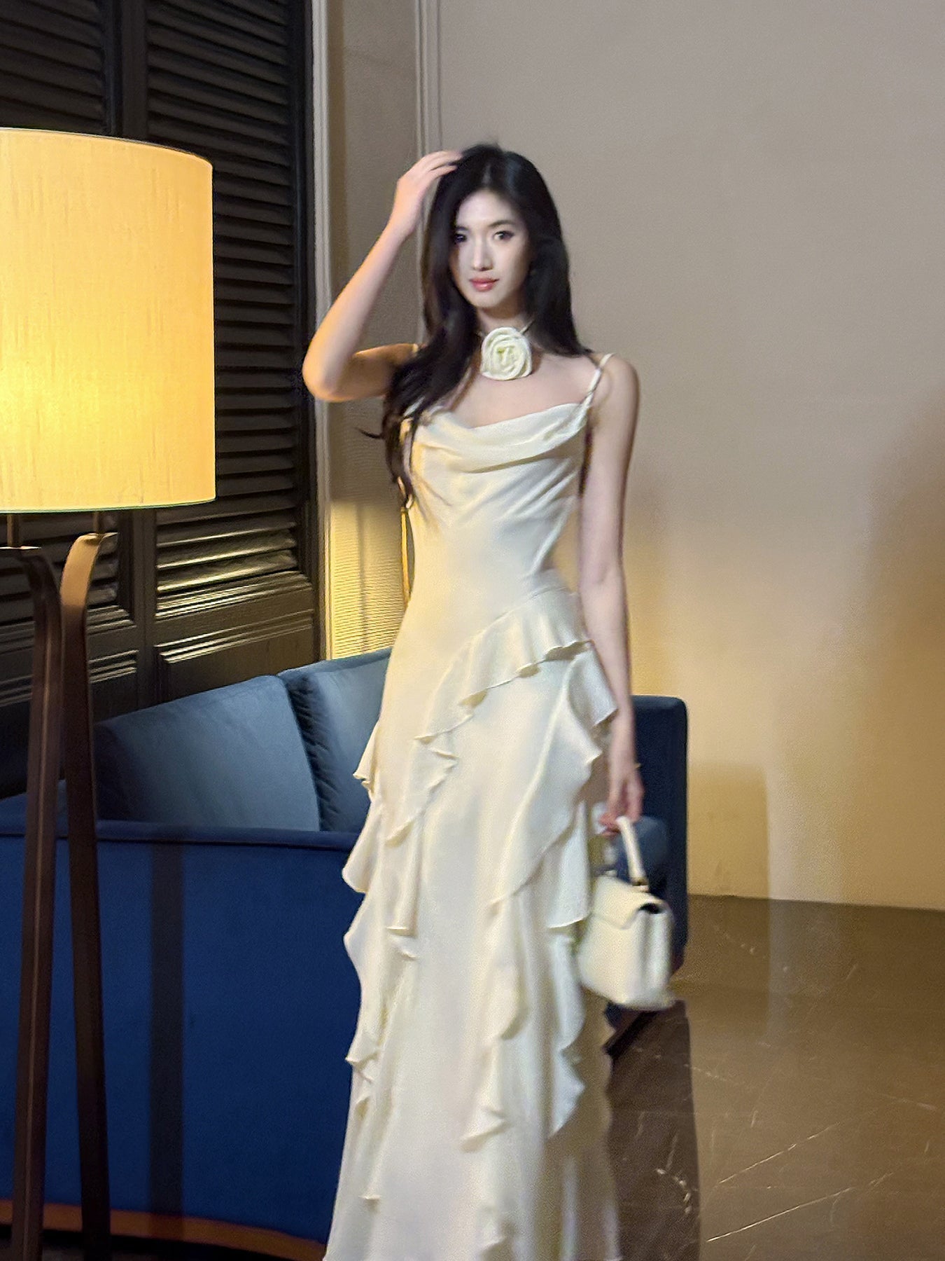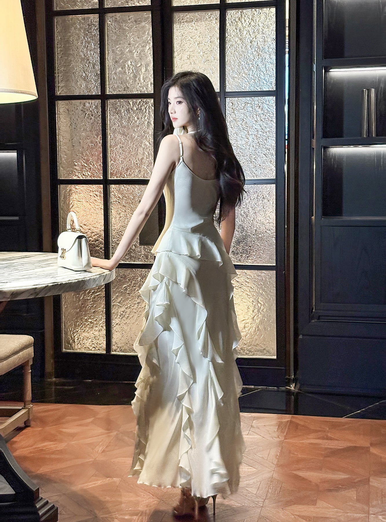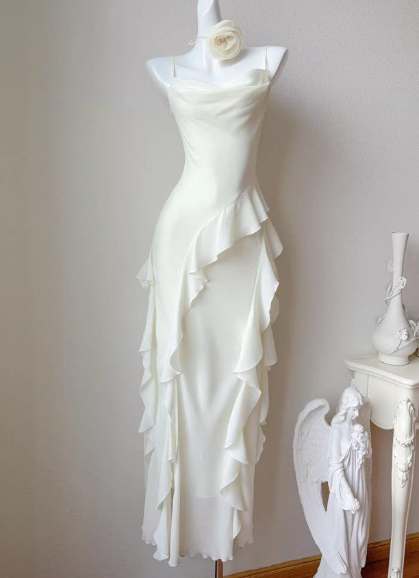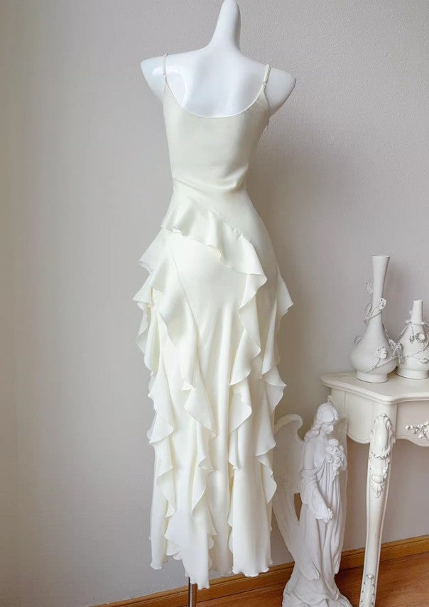 Niulatu Birthday Evening Gowns Off-White Spaghetti Straps Chiffon Ruffles A-Line Prom Dresses HZ1103
