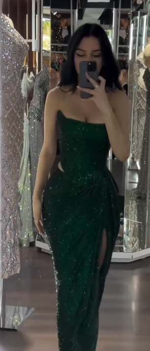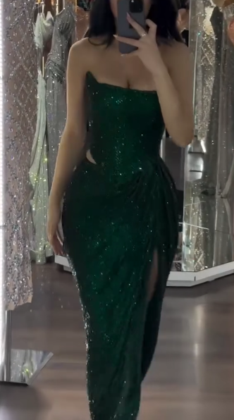 Niulatu Dark Green Sheath Evening Gowns Sexy Strapless Corset Formal Dress Wedding Guest Dress HZ1031