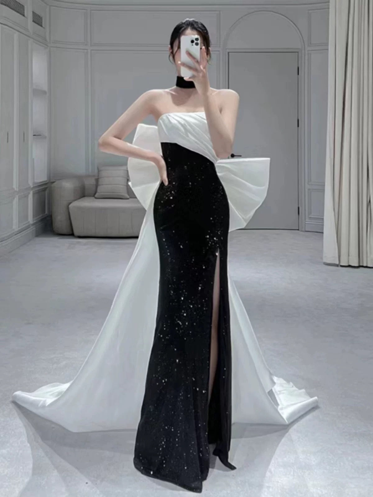 Niulatu Mermaid Strapless Black Sequin Long Prom Dress Evening Dresses HZ1110
