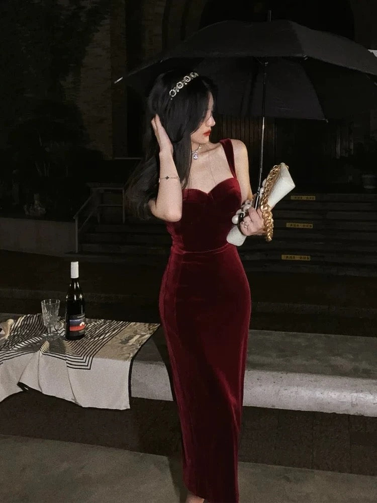 Niulatu Mermaid Straps Burgundy Velvet Evening Dress Prom Dresses Birthday Outfits HZ1110