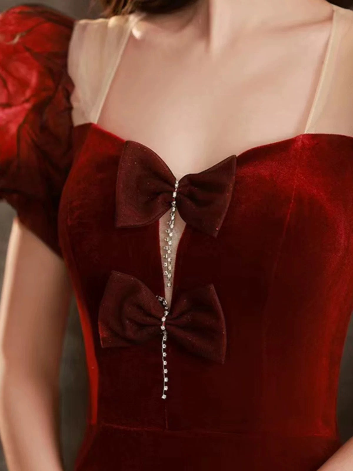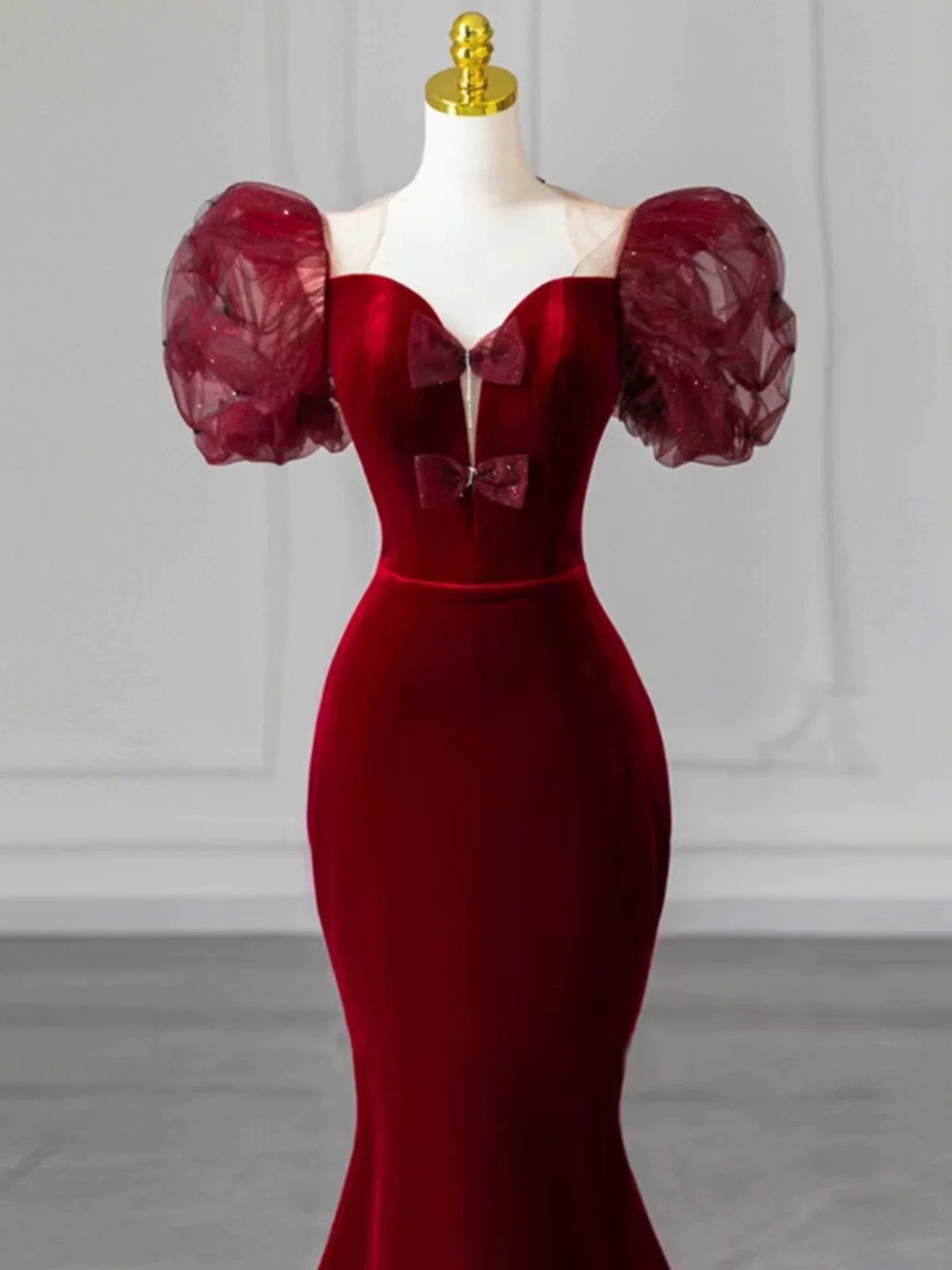 Niulatu Mermaid Sweetheart Burgundy Short Sleeves Long Prom Dress Evening Dresses HZ1110