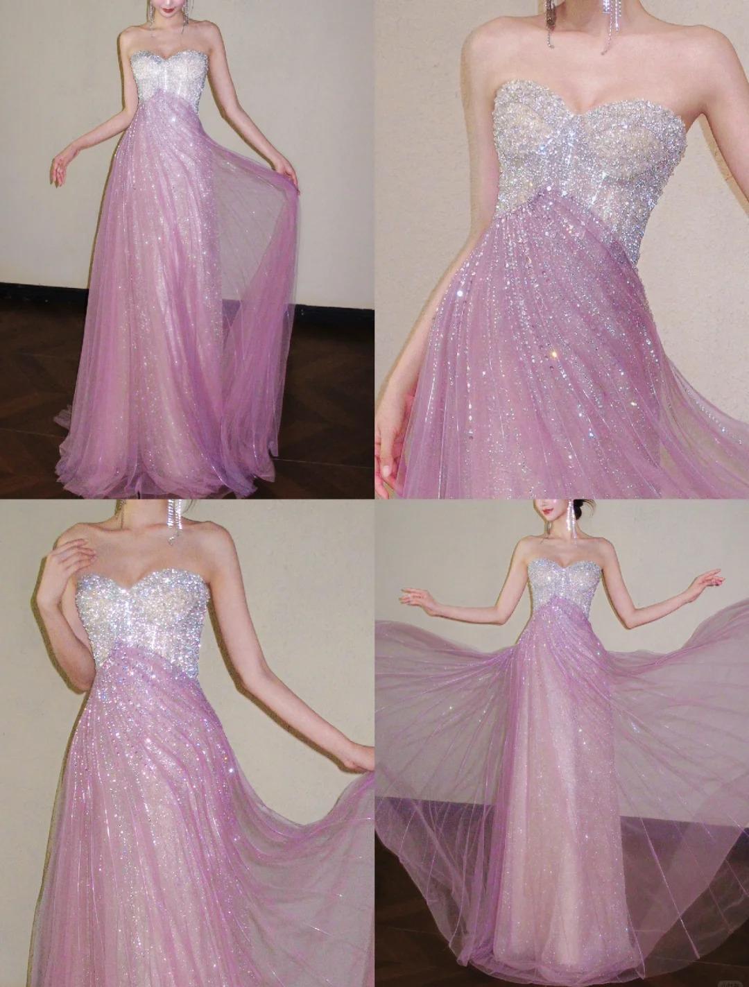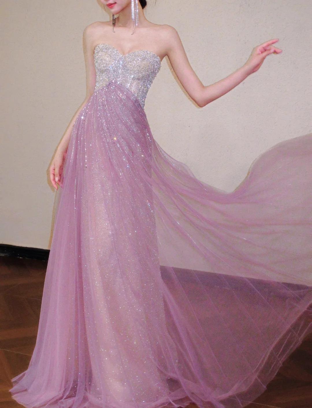 Niulatu Pink Sweetheart A-Line Tulle Sequins Long Prom Dresses Elegant Formal Evening Gowns HZ1031