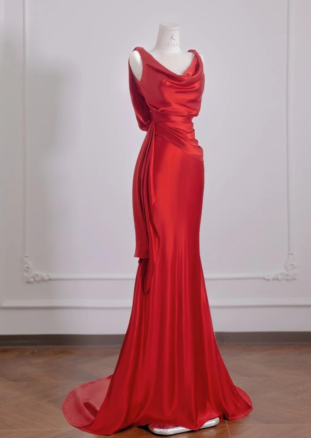 Niulatu Red Satin Mermaid Open Back Long Prom Dresses Elegant Evening Gowns HZ1103
