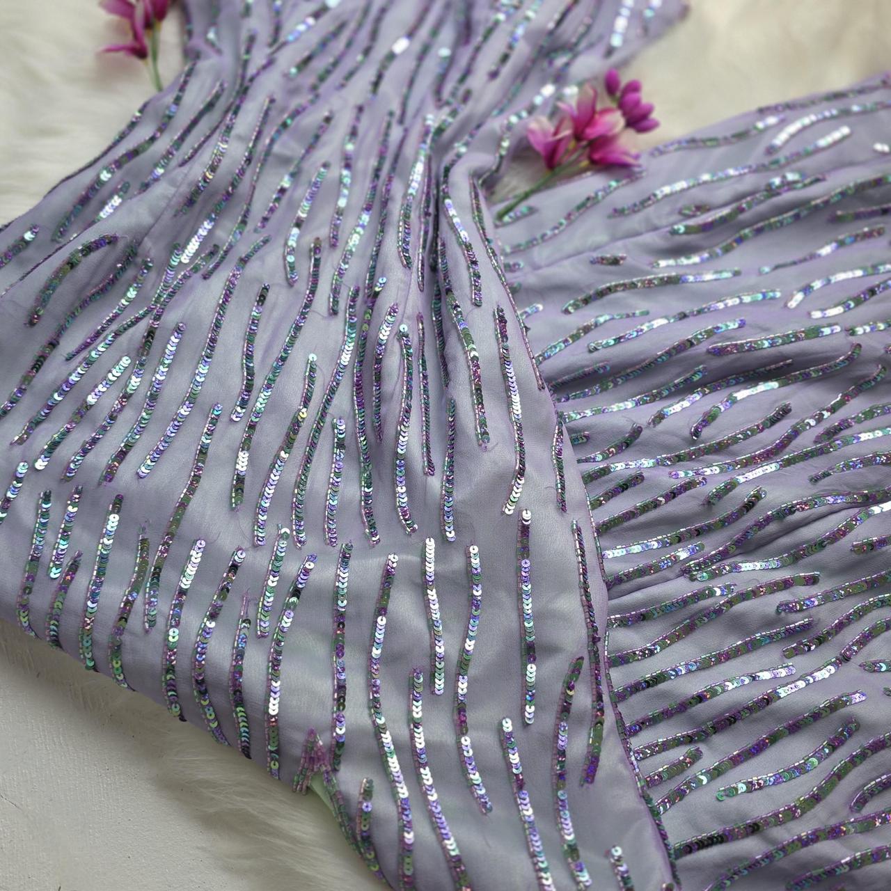 Niulatu Sheath Purple Formal Dresses V-neck Prom Dresses Chiffon Sequins Open Back Evening Gowns HZ1026