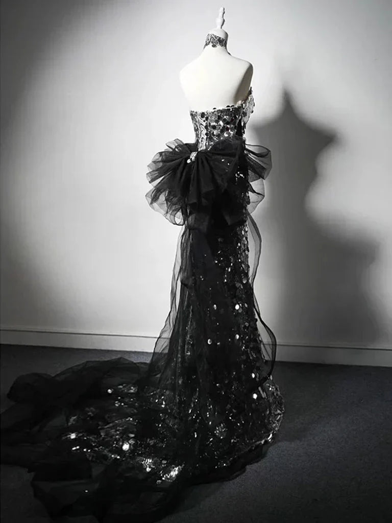Niulatu Silver Mermaid Strapless Sequin Tulle Long Prom Dress Formal Evening Dress HZ1103