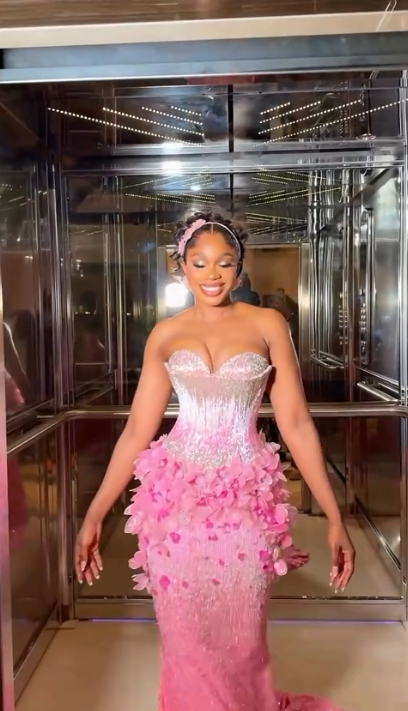 Absolutely love the fit and style! The lace and floral details give it such a romantic vibe. Perfect for prom or any special event.
