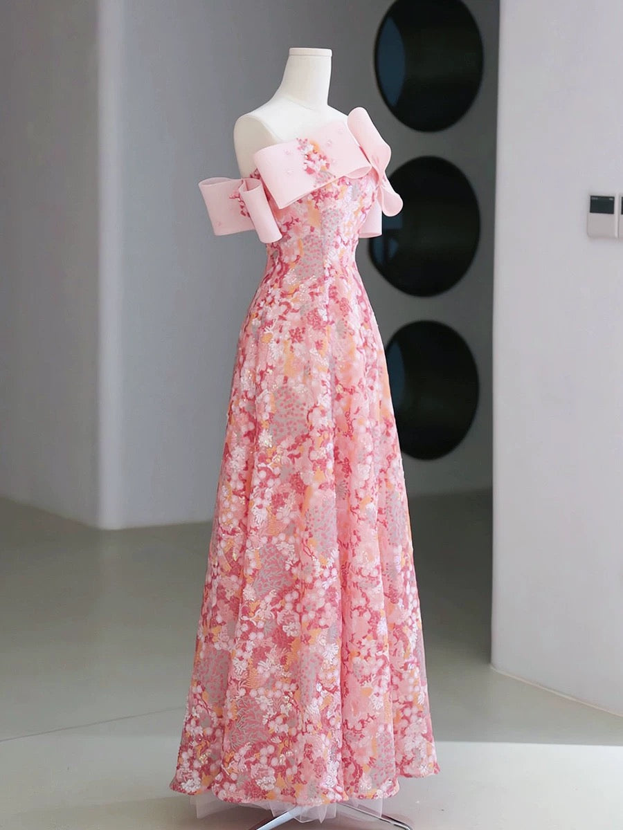 Niulatu Style A-line Off Shoulder Strapless Pink Long Evening Dress Prom Dress HZ1110