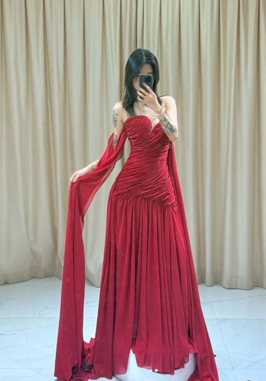 Niulatu Sweetheart Sheath Burgundy Long Prom Dresses Chiffon Burgundy Long Evening Dresses HZ1026
