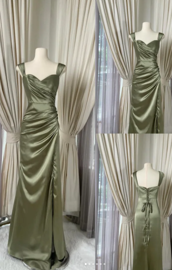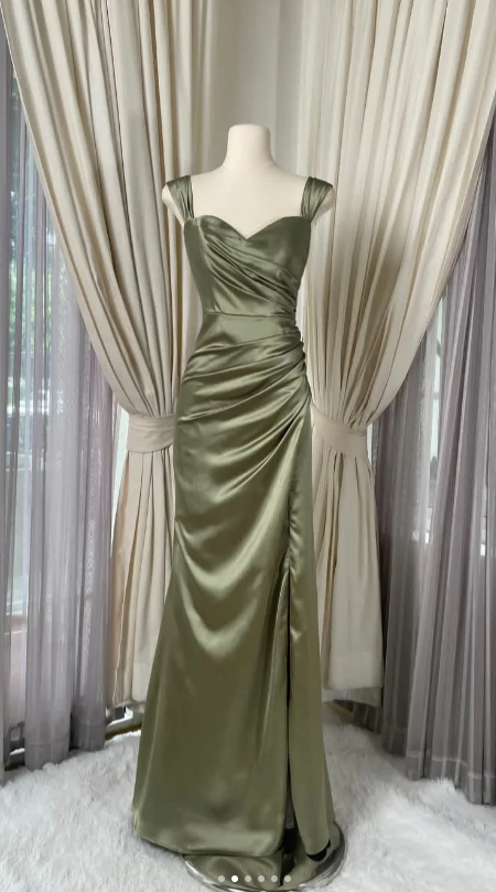 Niulatu V-neck Sheath Satin Prom Dresses, Oliver Green Formal Evening Dresses HZ1026