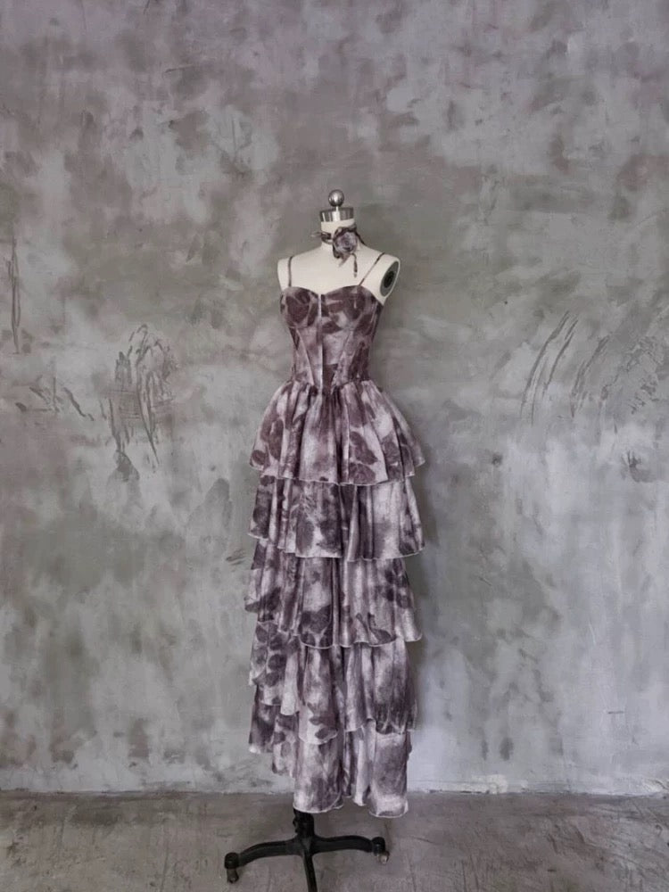 Niulatu A line Spaghetti Straps Floral Long Prom Dresses Birthday Dress For Women SD246