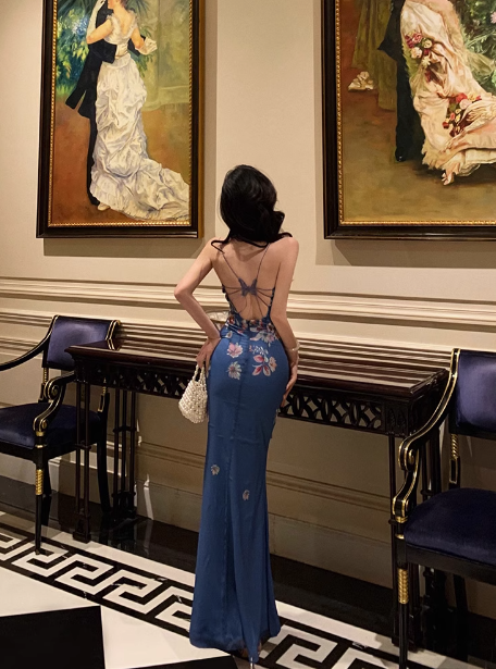 Elegant Mermaid Blue Floral Sleeveless 21st Birthday Dress Party Gown Birthday Outfits Birthday Dress Ideas For Women HZ1214