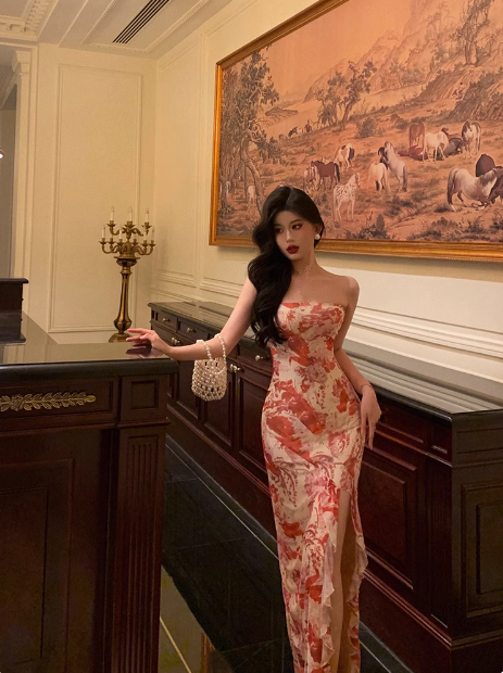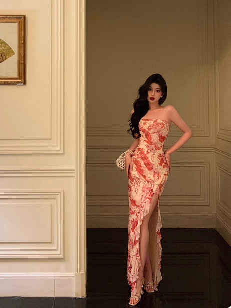 Elegant Mermaid Strapless Pink Floral Sleeveless 21st Birthday Dress Party Gown Birthday Outfits Birthday Dress Ideas For Women HZ1214