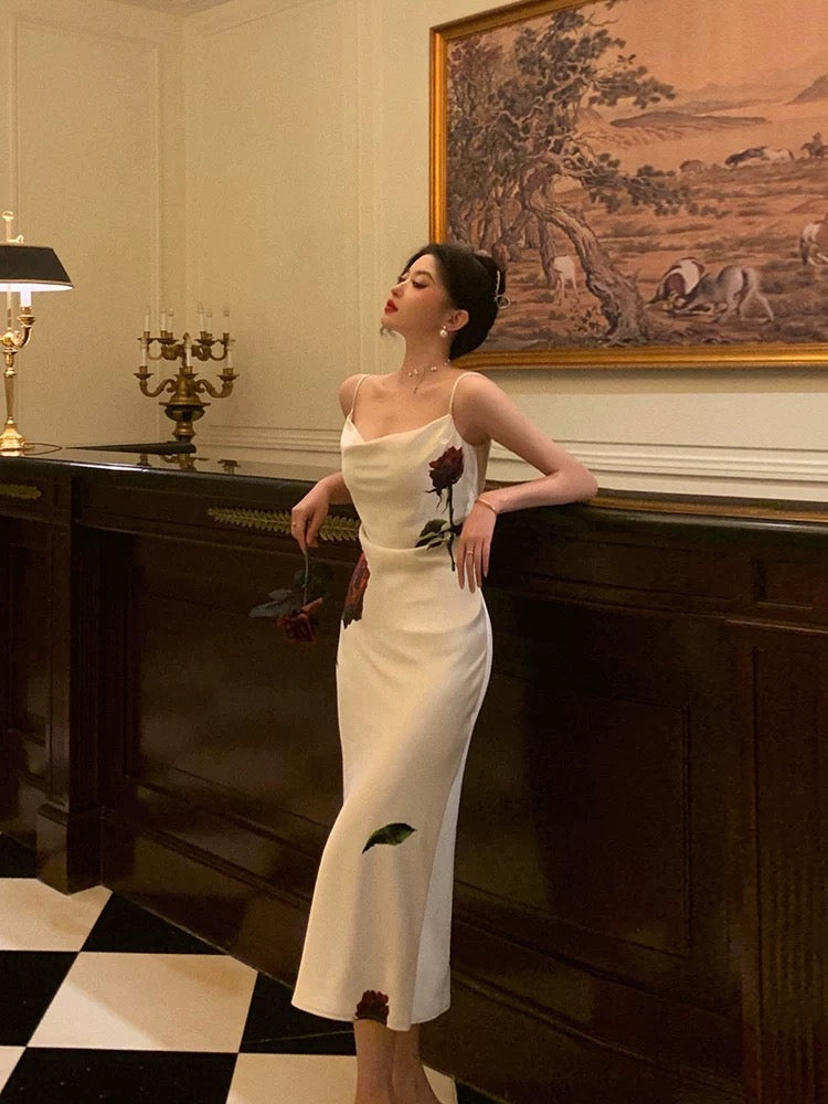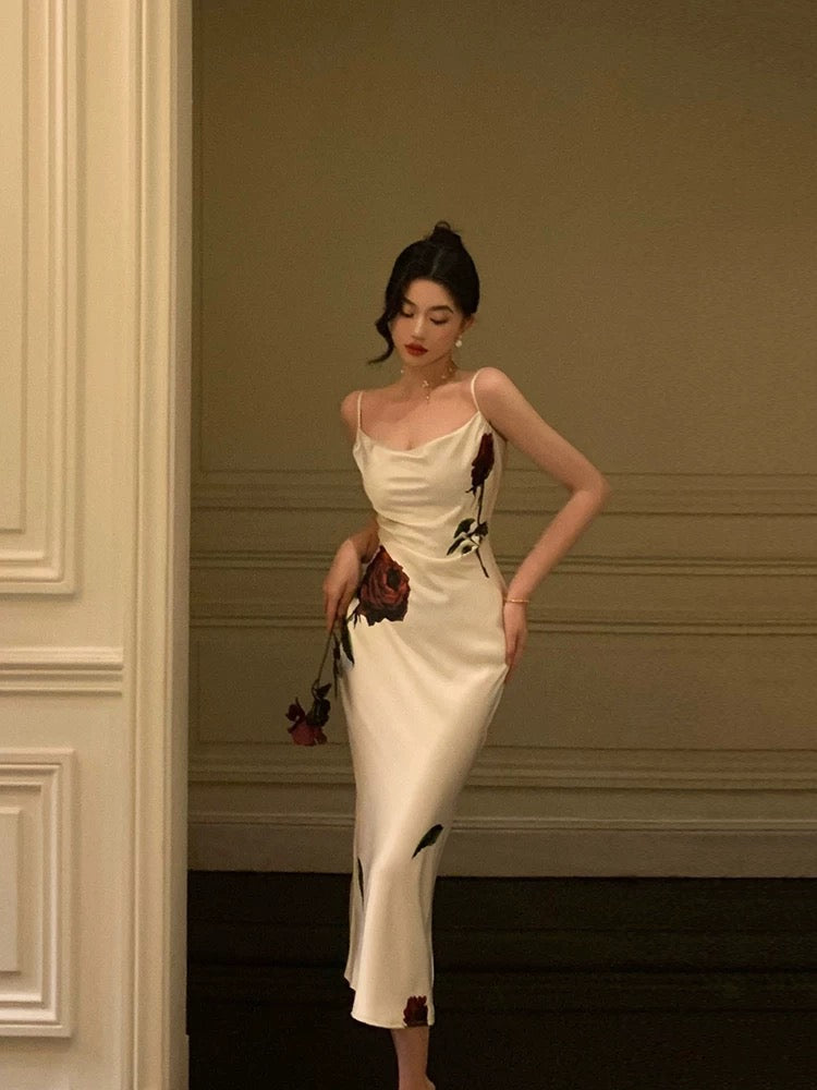 Niulatu Mermaid Spaghetti Straps White Floral Date Night Dress Prom Dresses Birthday Outfit SD725
