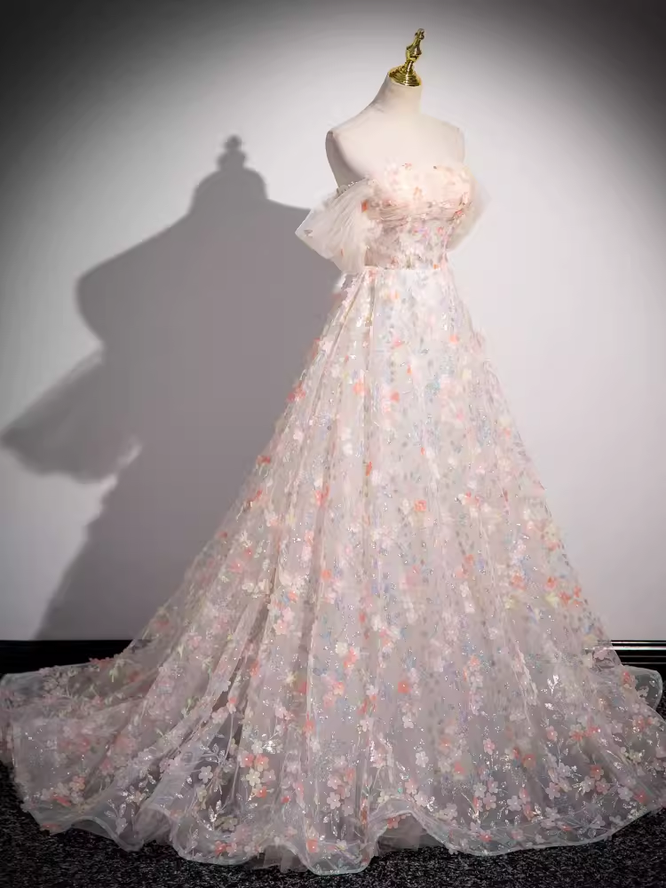 Niulatu A line Strapless Floral Long Prom Dress HZ1110