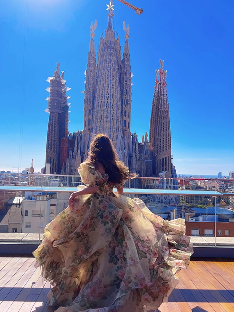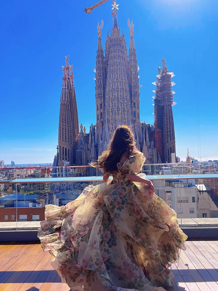 Niulatu Princess Square Neckline Floral Green Long Ruffles Prom Dresses Birthday Dress SD578