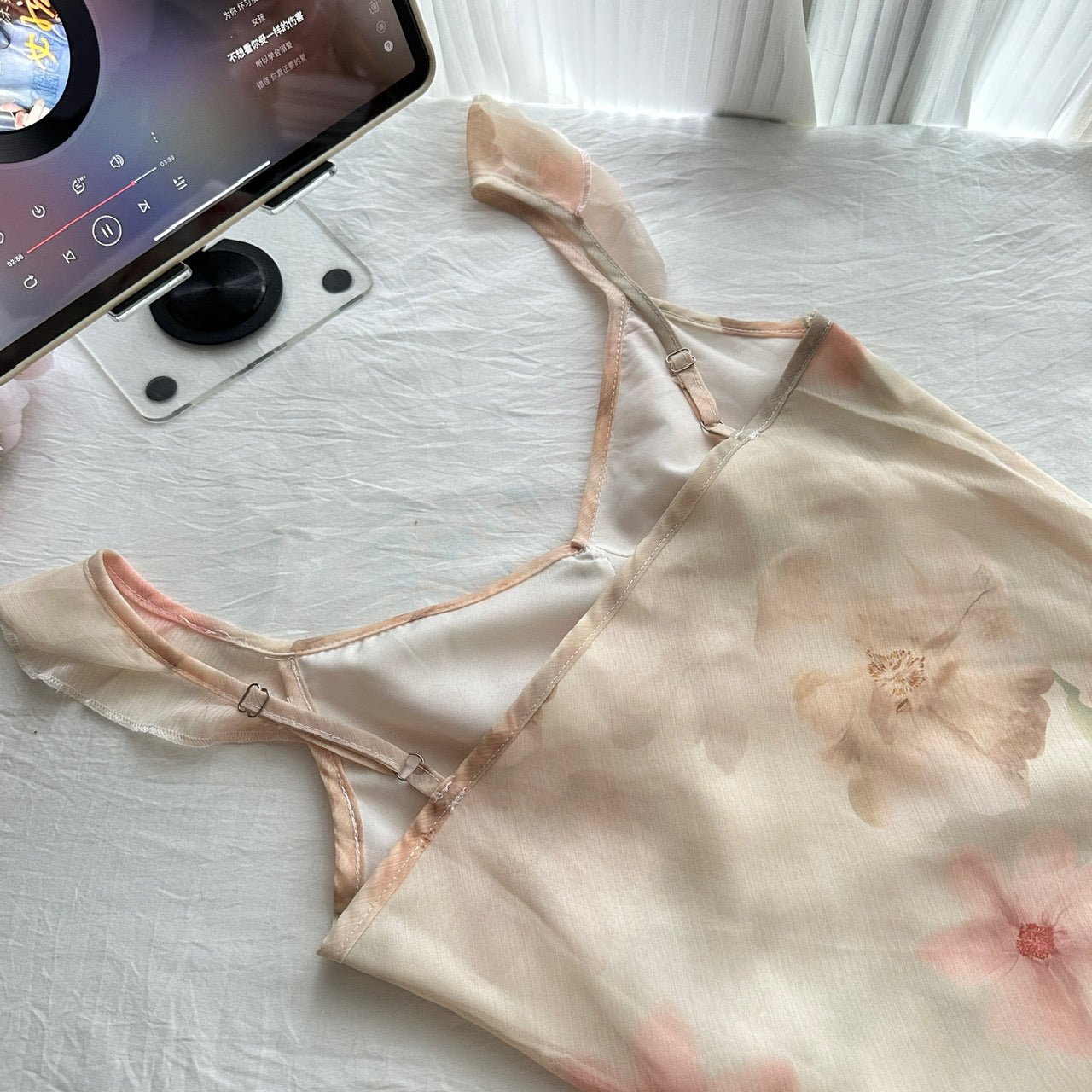 Simple Sheath V Neckline Pink Floral Chiffon Summer Dress Holiday Party Dress Birthday Outfits For Teens HZ1214