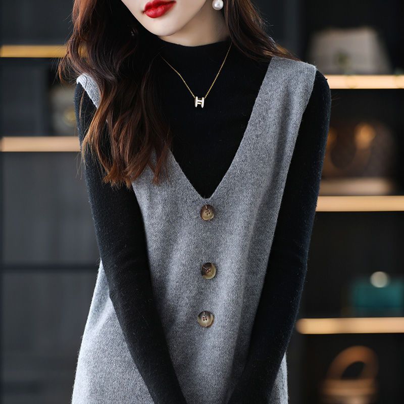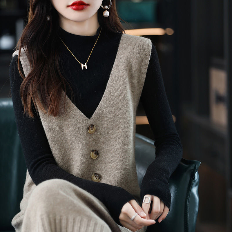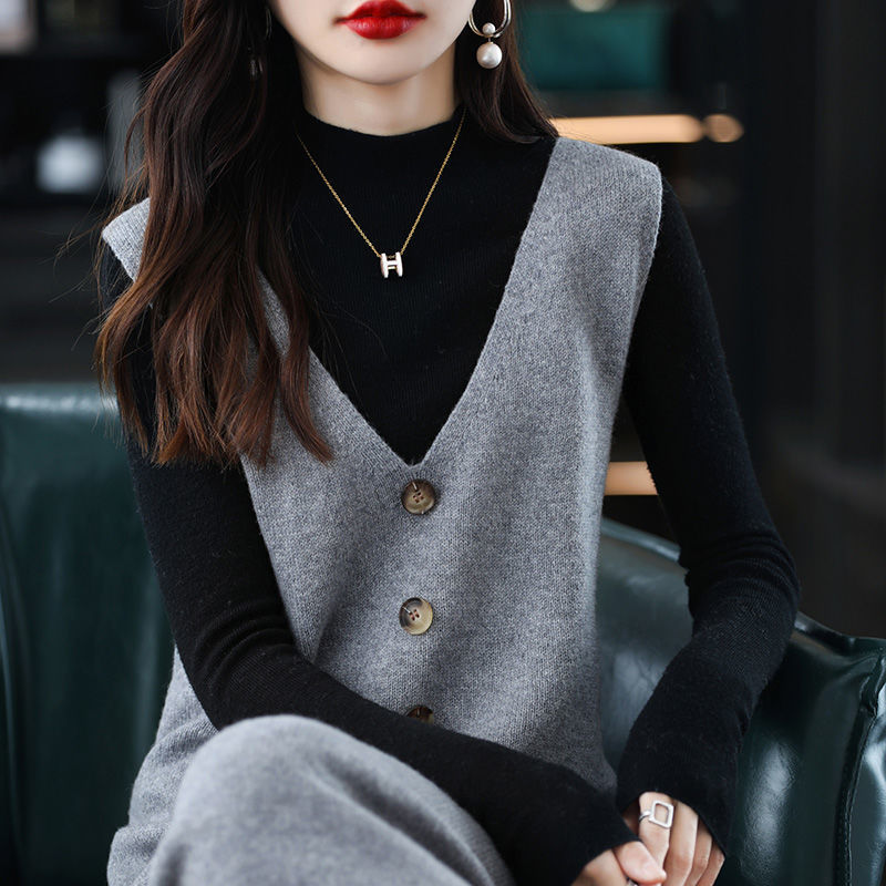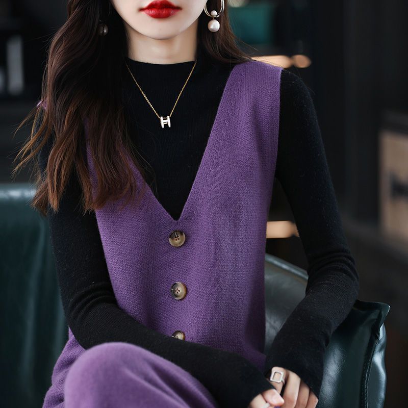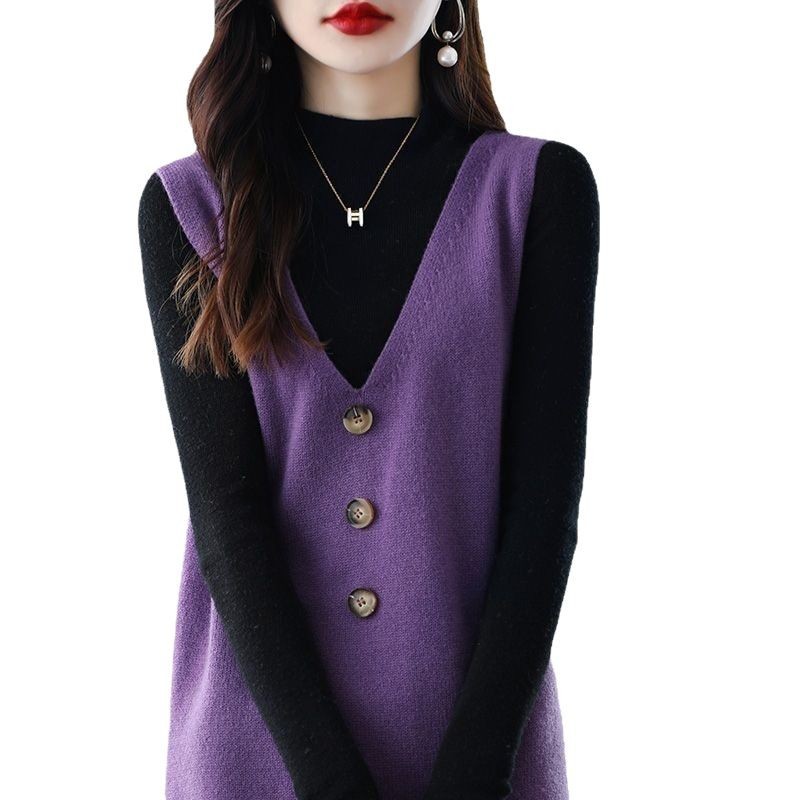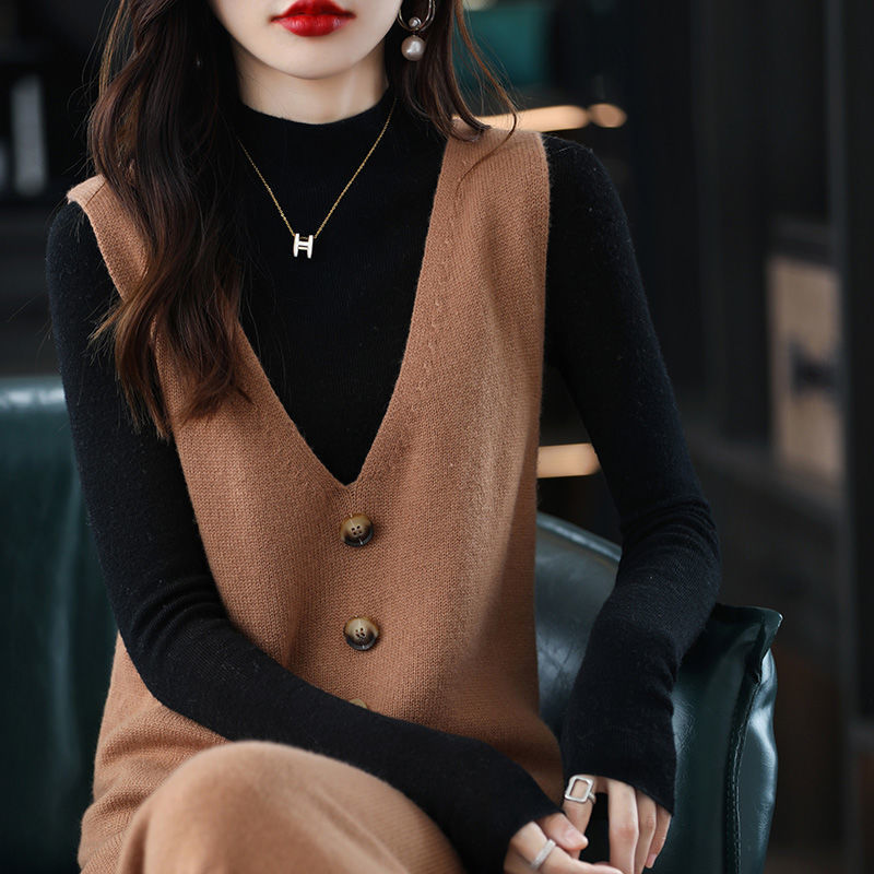 2025 Spring And Autumn V-Neck Dress Women's Vest Vest Knitted Long Sweater Bottom Sweater Skirt Sleeveless HZ0108