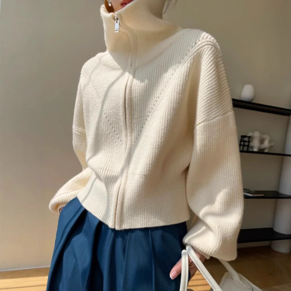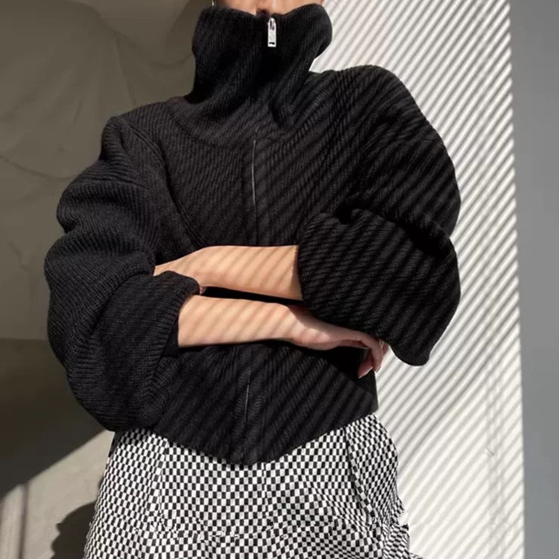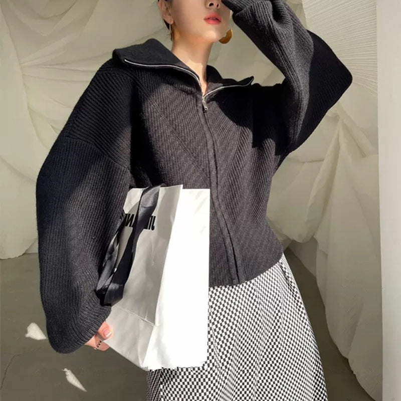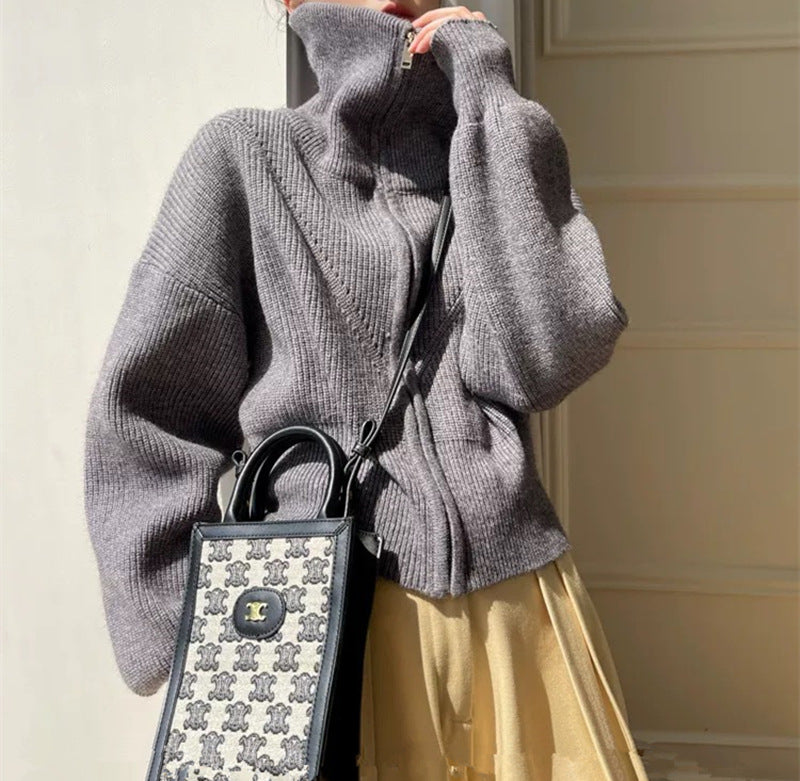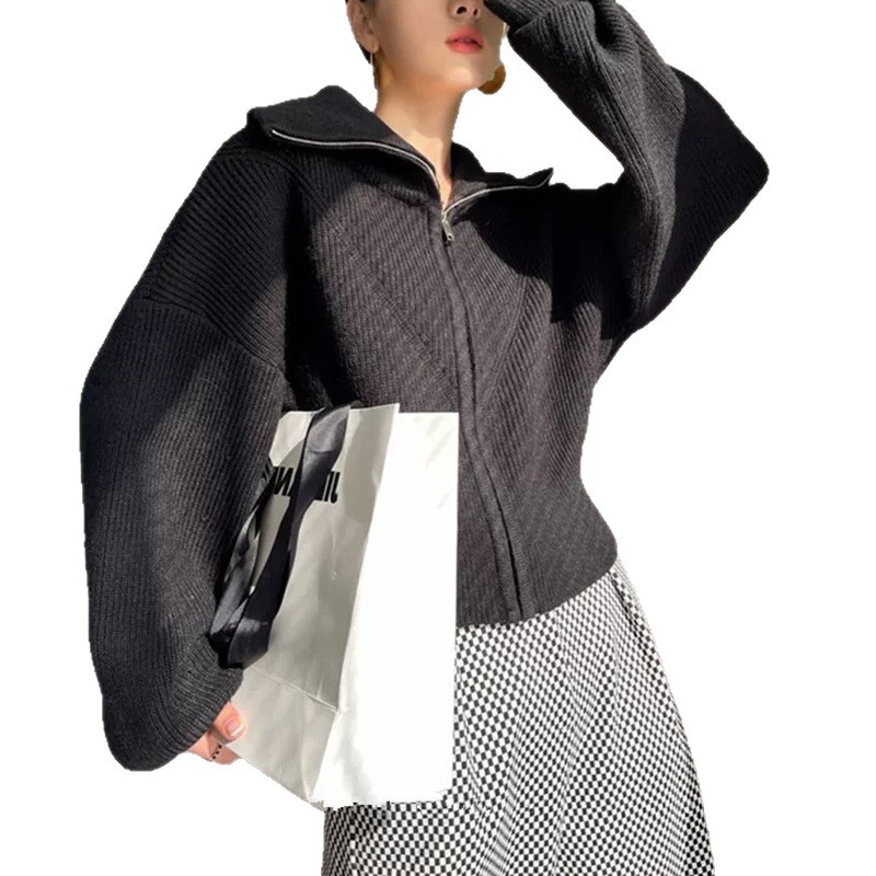 Autumn And Winter New High-End Knitted Open Shirt Lazy Wind High-Collar Loose Thin Sweater Women's Coat HZ0108
