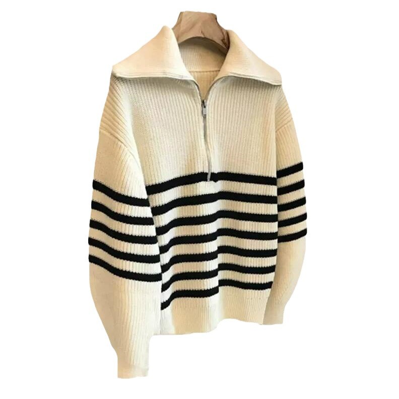 Clip Half-Open Zipper Bumpy Striped Sweater Women Winter New Lazy Wind In The Knitted Ocean Gas Bottom Shirt HZ0108