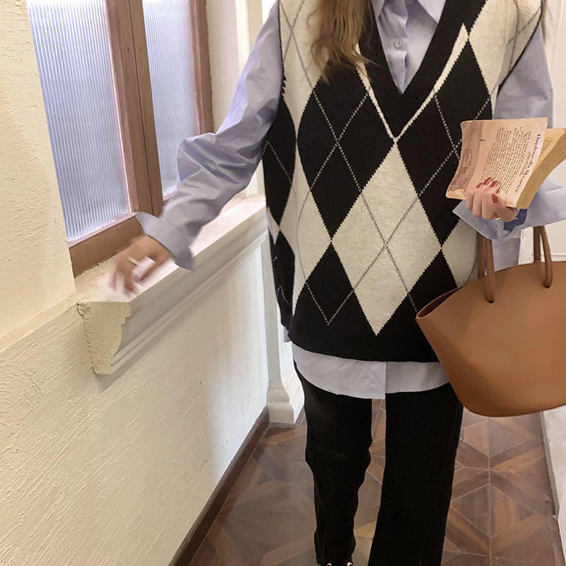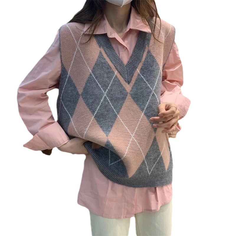 College Wears Knitted Vest Women's Spring And Autumn 2025 New External Vest Stacked With Autumn Lingg V-Neck Sweater HZ0108
