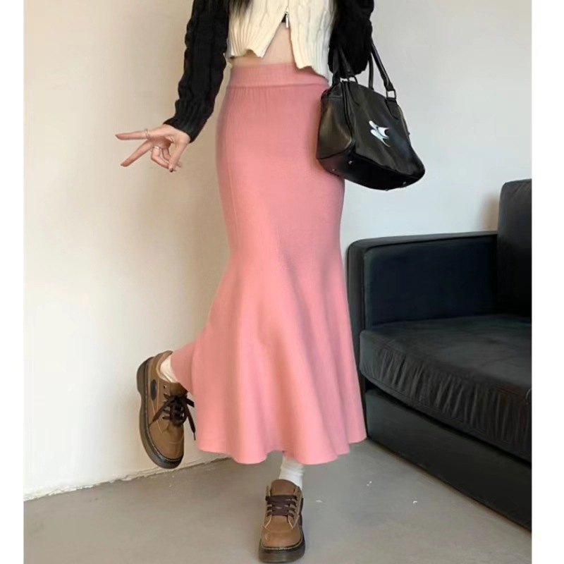 Height Waist Fishtail Skirt Women Autumn And Winter Korean Version 2025 New Thin Long Knitted Temperament A-Word Half-Body Skirt HZ0108