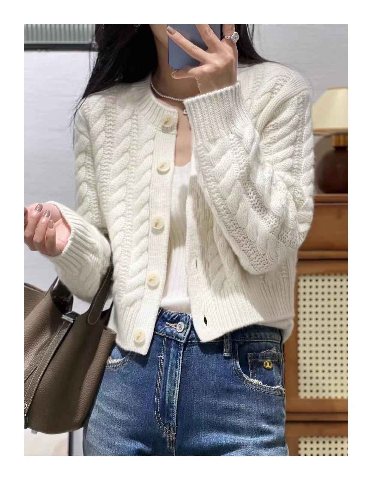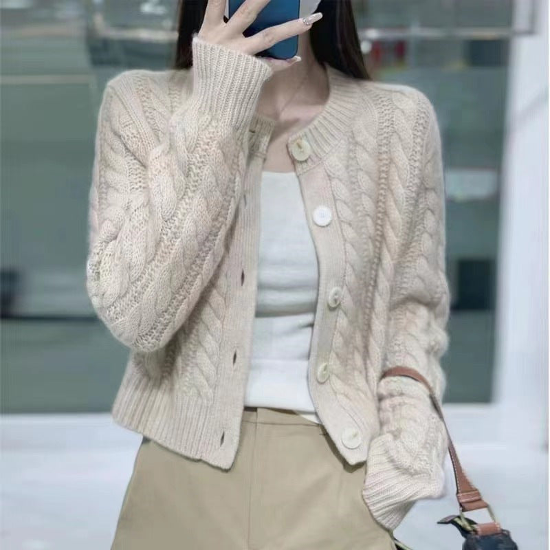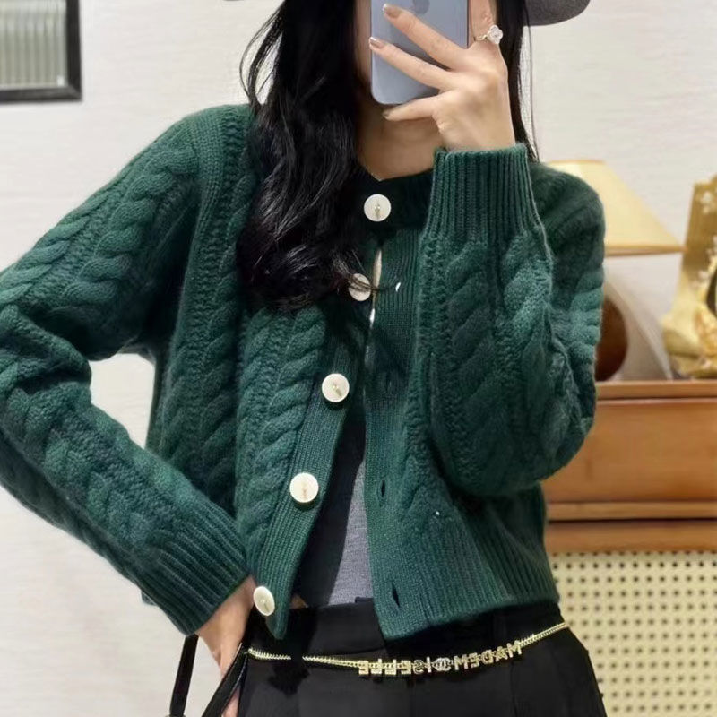 High-End Soft-Dense Cardigan Sweater Women 2025 Autumn And Winter New Retro Loose Jasmine Short Coat Top HZ0108